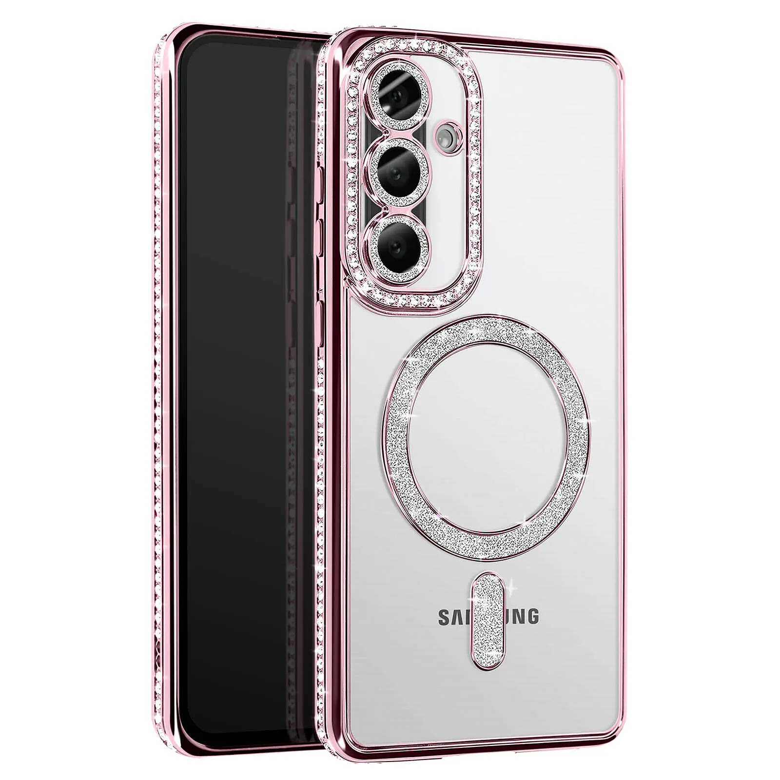 Avizar Coque Diamant pour Samsung Galaxy A36 MagSafe Contour Strass Rose