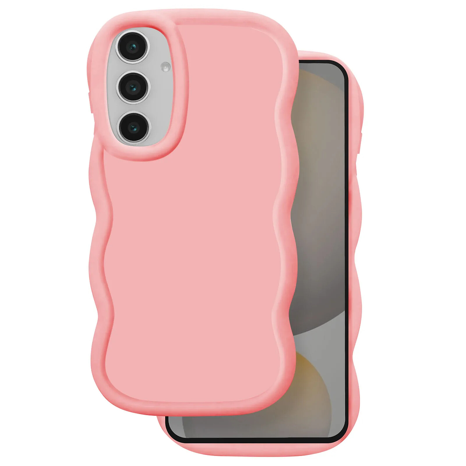 Coque pour Samsung Galaxy S24 FE de la série série Candy, rose. Matériau en silicone souple. Protection optimale contre les chutes et chocs. Coins renforcés. Bordures surélevées. Finition mate élégante. Design ondulé unique et moderne. Fonctions accessibles.