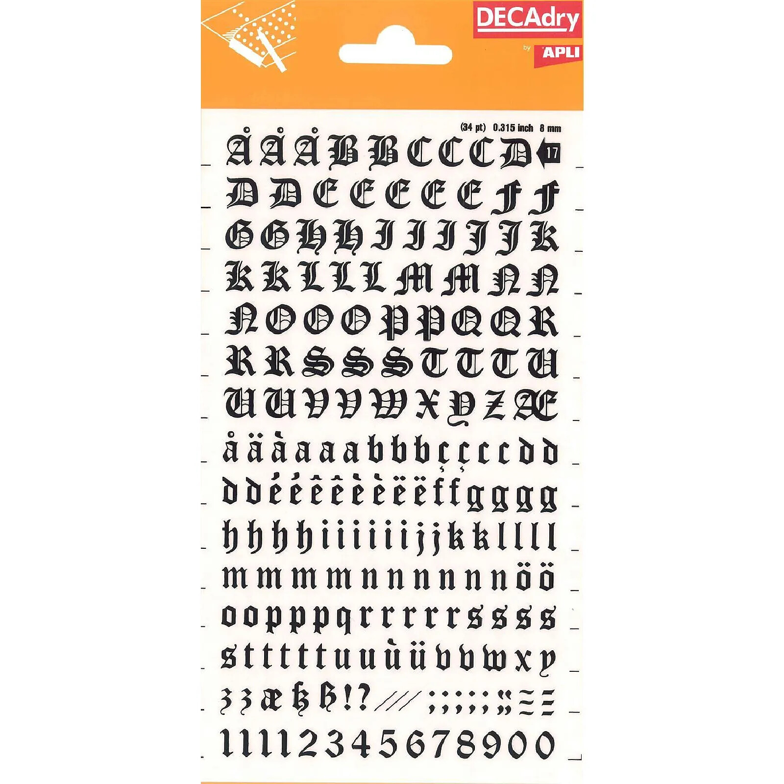 DECADRY Lettres et Chiffres Transferts (1 Feuille) DD17F 8 mm Noir