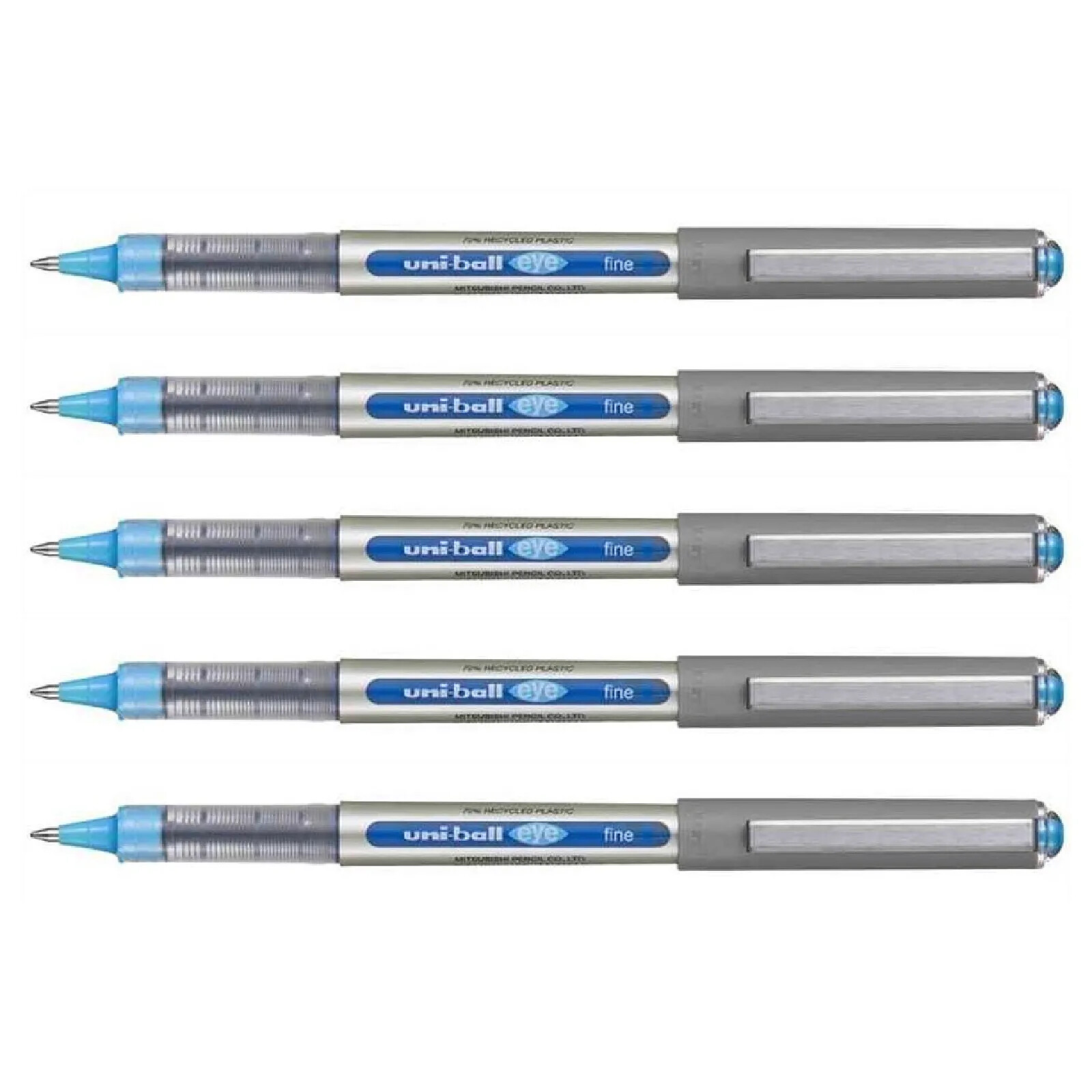 UNI-BALL Stylo Roller Encre Liquide Recyclé UB157E Pointe Moyenne Bleu ciel x 5 |
