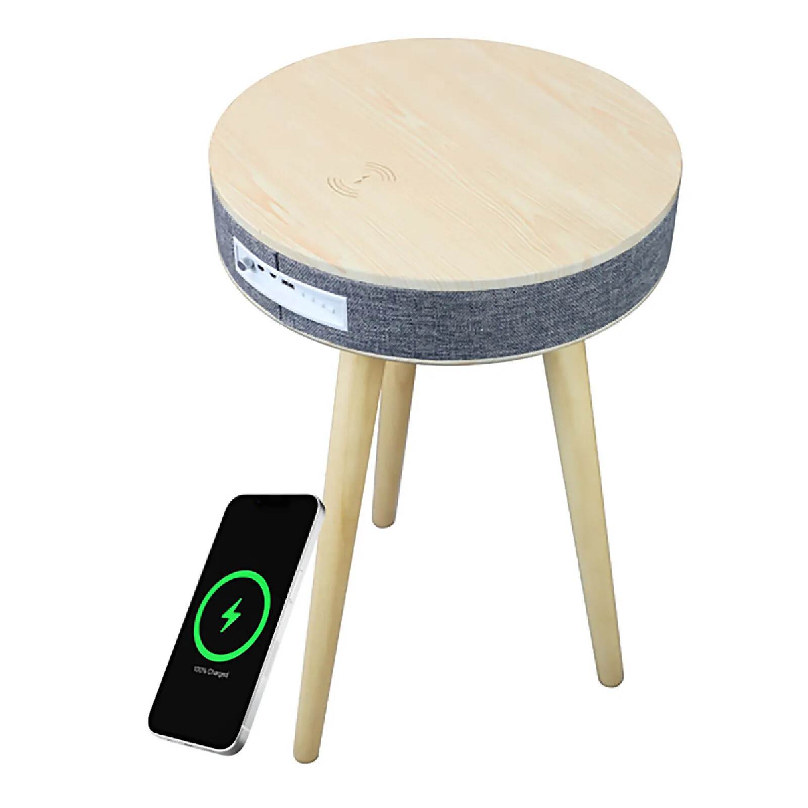 Avizar Enceinte Audio Table d'Appoint en Bois avec Bluetooth et Chargeur Budapest Beige |