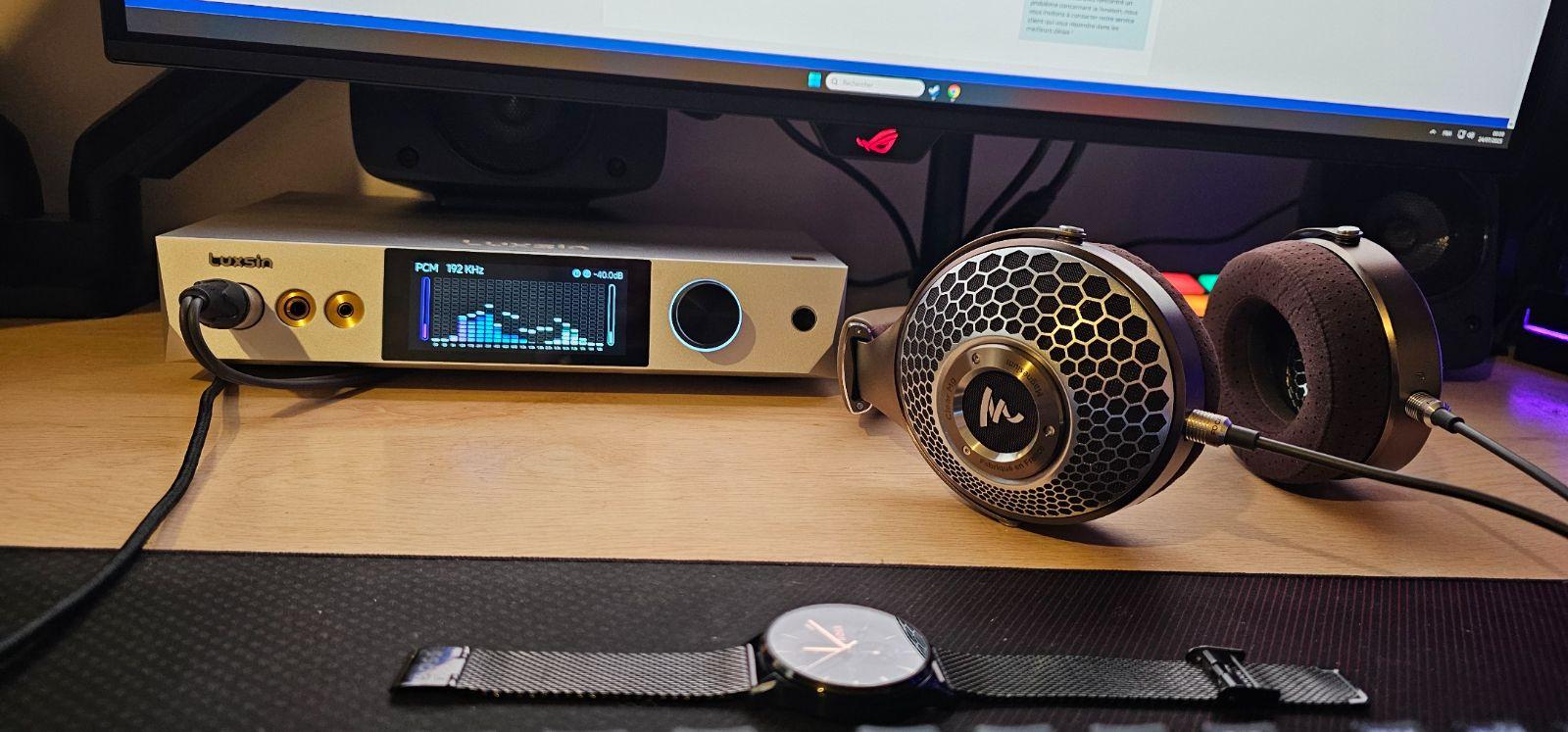 Cet ampli est juste excellent, beaucoup de connectivités, facile à utiliser, il est connecté à mon PC via un câble USB-B fournis, j'utilise un casque Focal Clear MG branché en XLR4, il passe en mode DAC au delà des 192khz qui se trouve être de très bonne qualité, mais le meilleur est quand on reste à 192khz/32bits et qu'on utilise l'equalizer avec les profils Harmans présents pour notre casque si il est référencé dans le logiciel (2500 casques référencés quand même), cela apporte un son tellement vivant, percutant, propre, nette, tout ça en même temps...