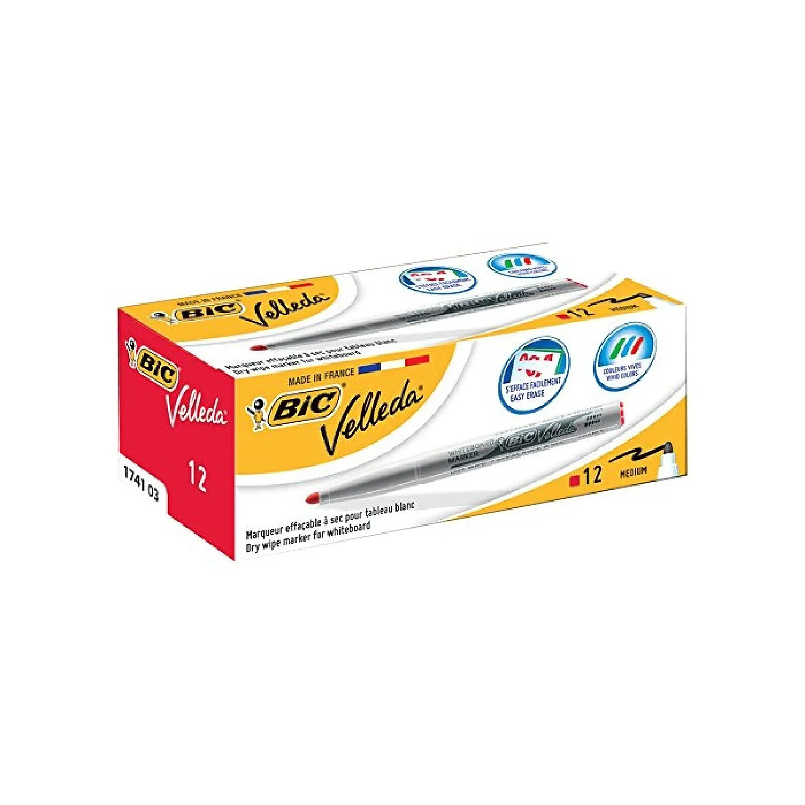 BIC Feutre tableau blanc effaçable à sec 1741 Pointe Medium Ogive Rouge x 12 |