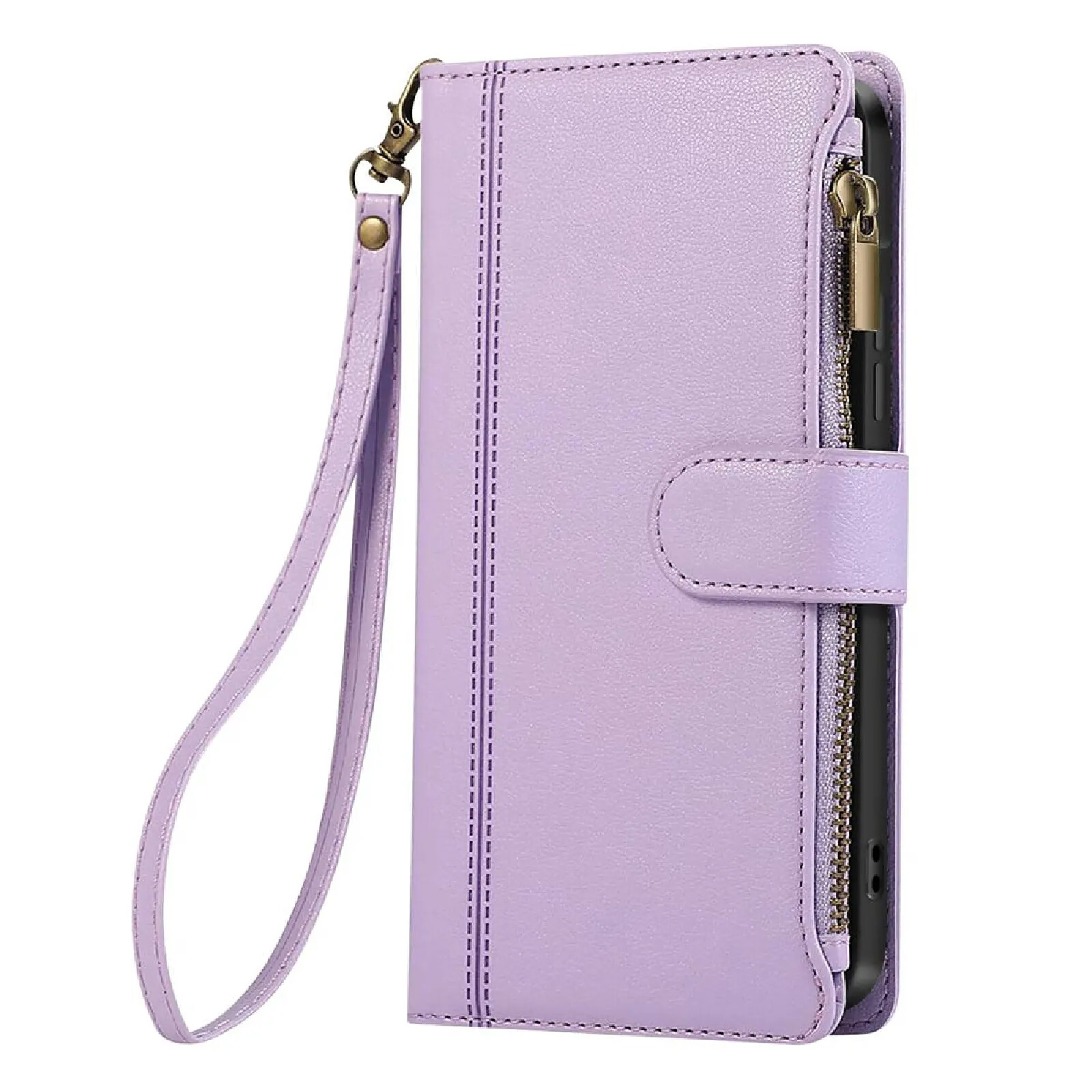 Avizar Étui Portefeuille pour Galaxy A56 Zippé avec Bandoulière Amovible Lavande