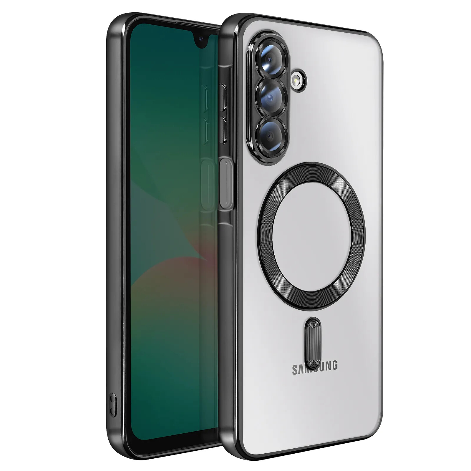 Offrez une protection élégante et moderne à votre Samsung Galaxy A26 avec cette coque MagSafe transparente. Dotée d'un contour chromé noir raffiné et d'un anneau magnétique intégré, elle assure une compatibilité parfaite avec les accessoires MagSafe. Son design fin et sa transparence mettent en valeur l'esthétique du téléphone tout en garantissant une protection efficace contre les chocs et rayures.