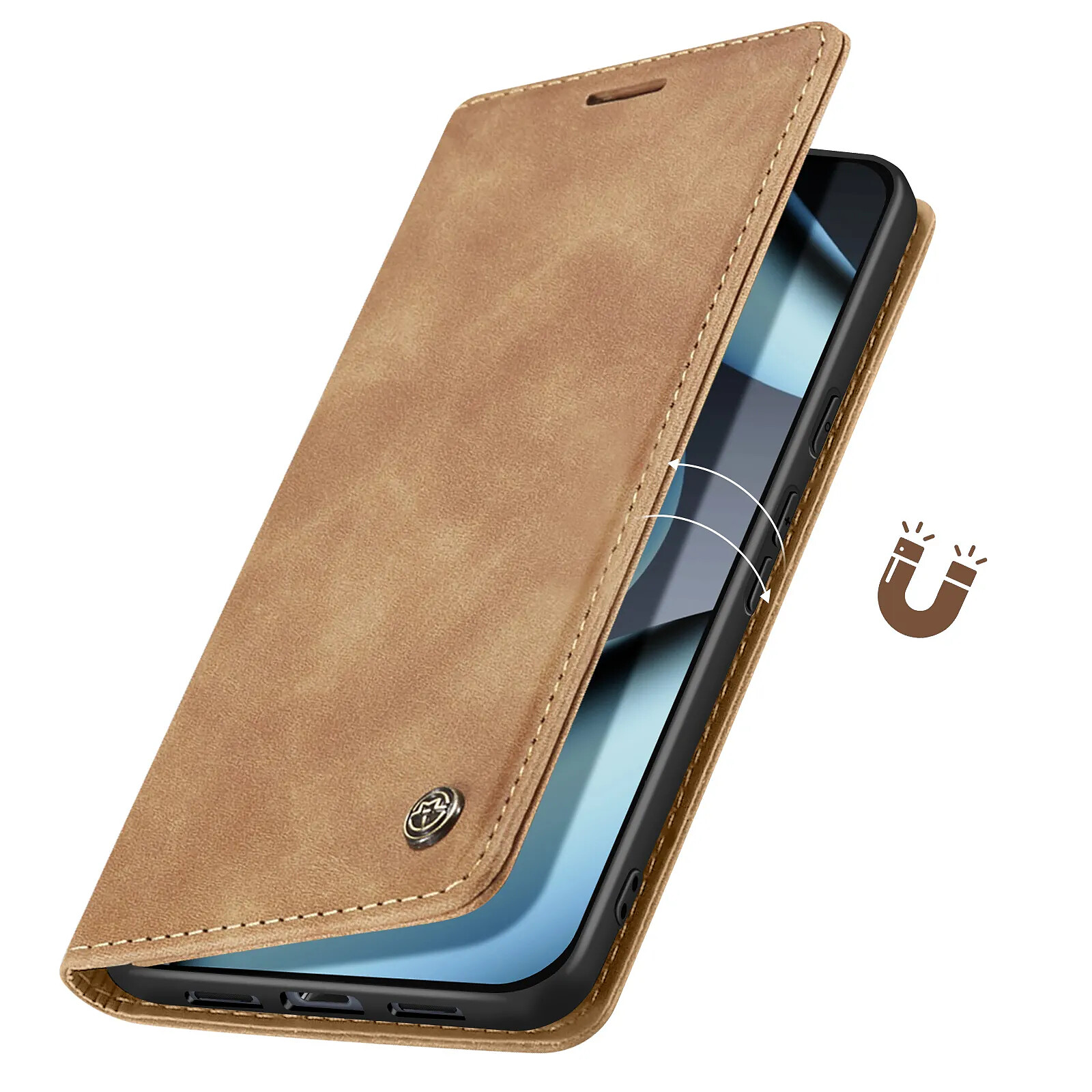 Protégez votre Pixel 10 / 10 Pro avec cet étui portefeuille collection CaseMe marron clair. Conçu en similicuir premium avec surpiqûres apparentes, il intègre des rangements pratiques pour cartes et billets. Le rabat se transforme en support horizontal pour un visionnage mains libres. Sa fermeture magnétique sécurise l'ensemble, tandis que la coque souple assure une protection efficace contre les chocs et rayures.