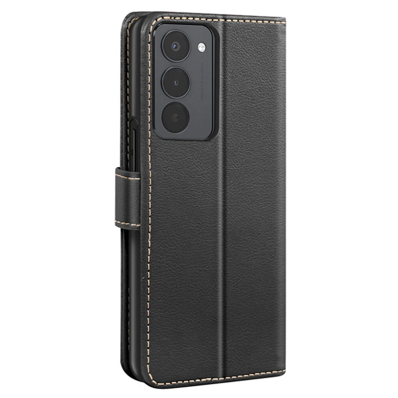 Étui portefeuille en similicuir grainé avec surpiqûres élégantes et résistantes