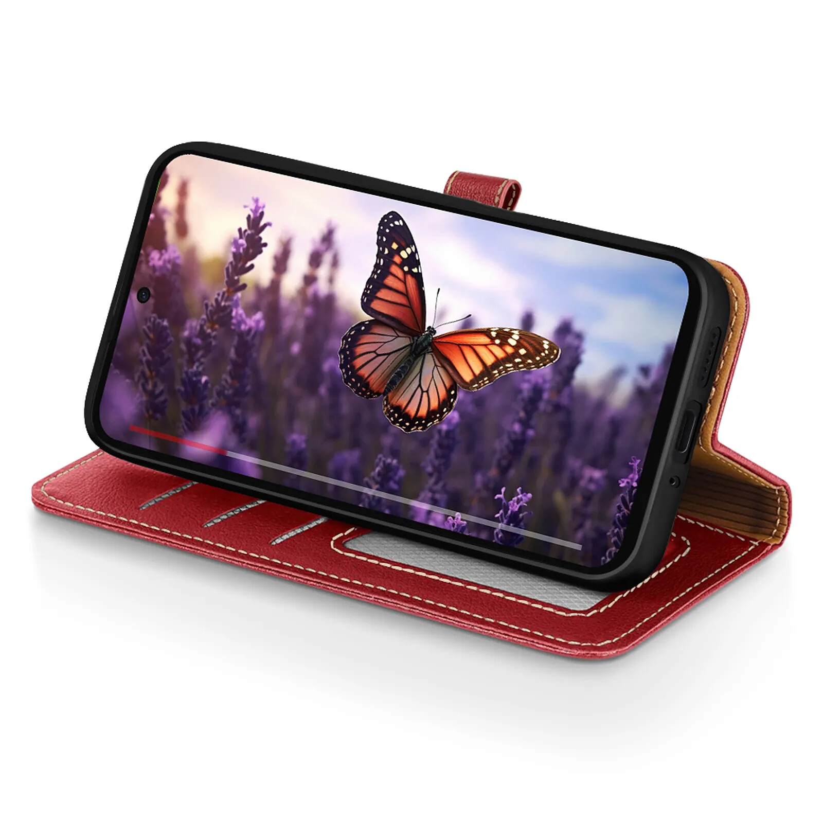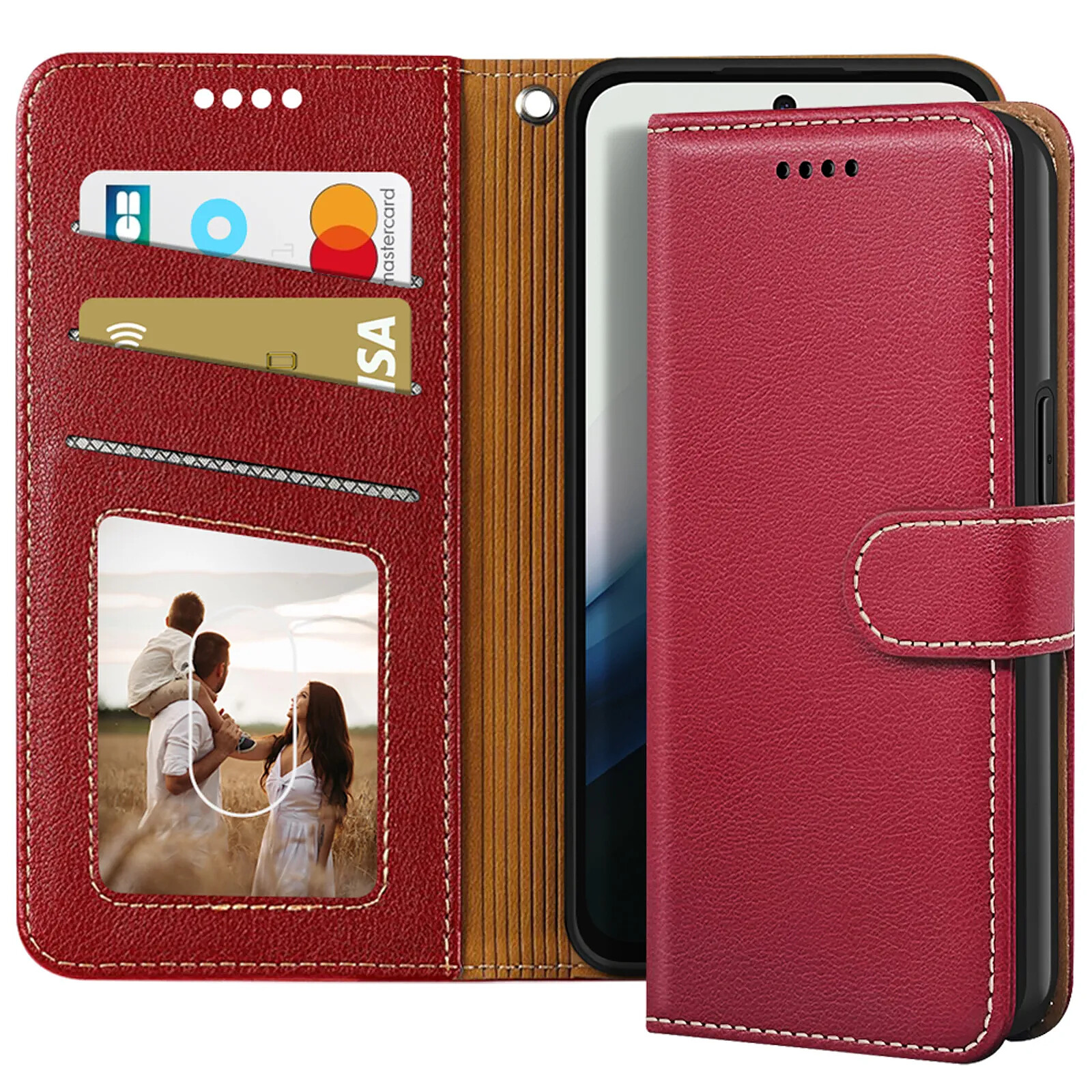 Étui portefeuille en similicuir grainé avec surpiqûres élégantes et résistantes