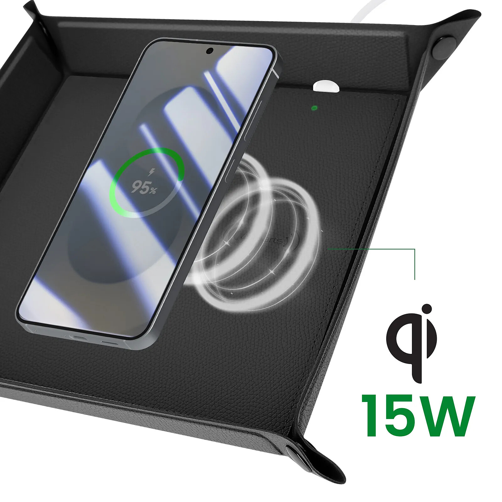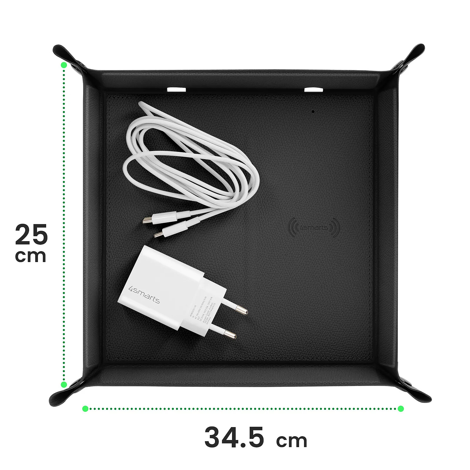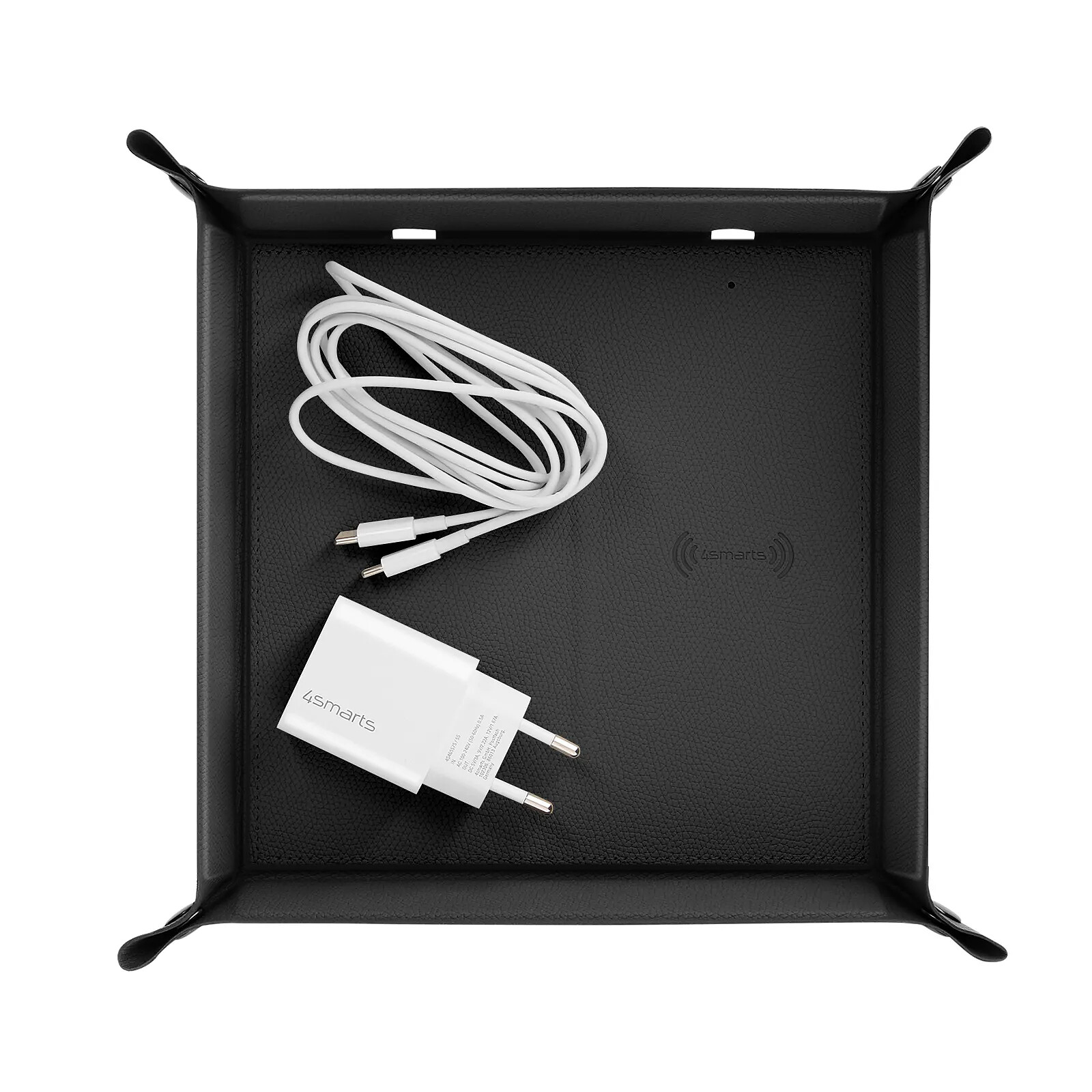 4smarts Vide-poches avec Station de Charge sans fil Qi 15W Charge Rapide Noir |