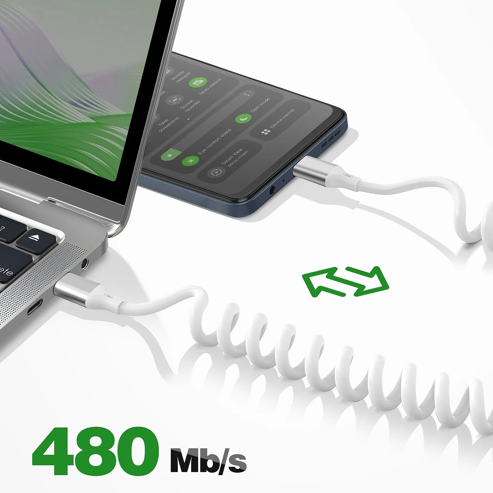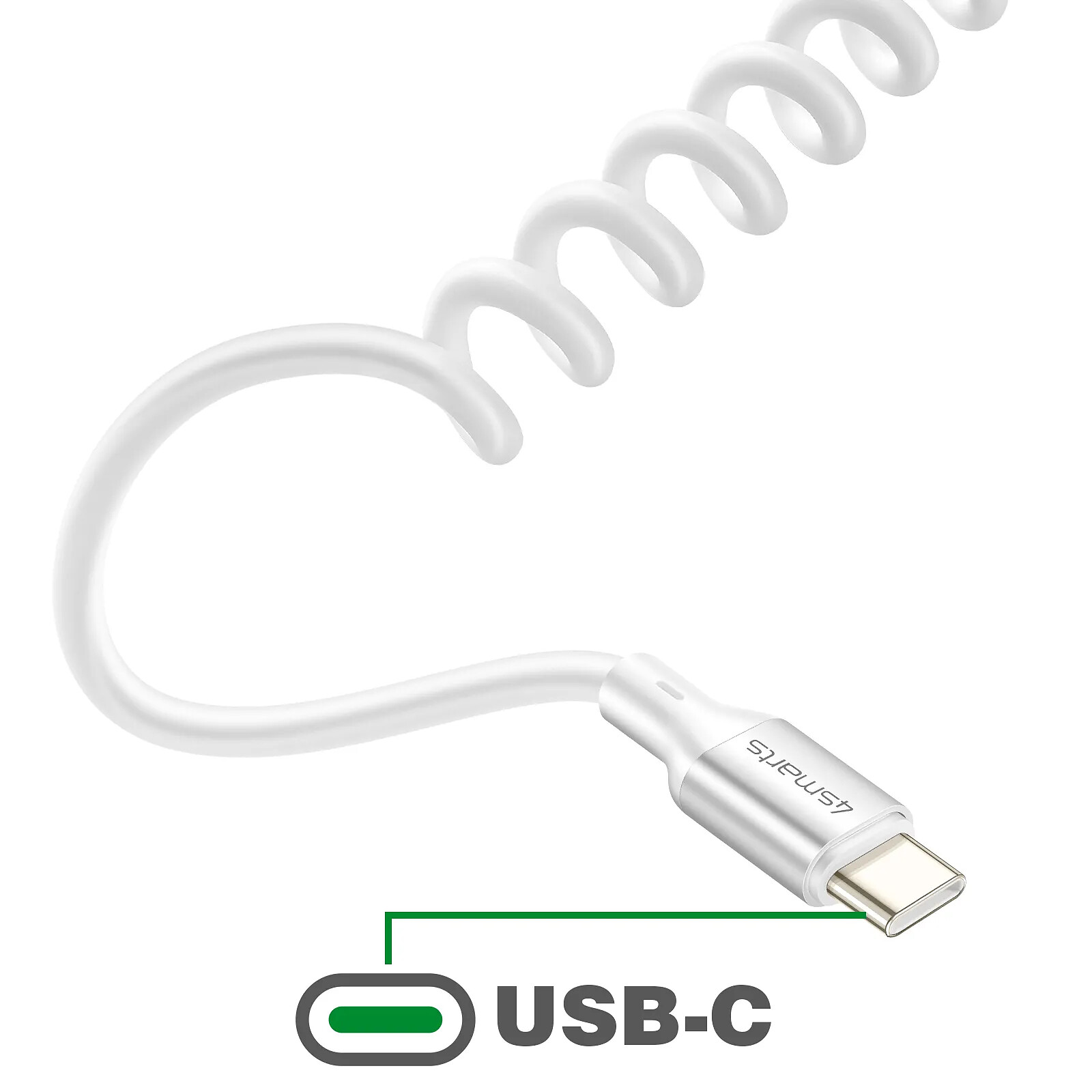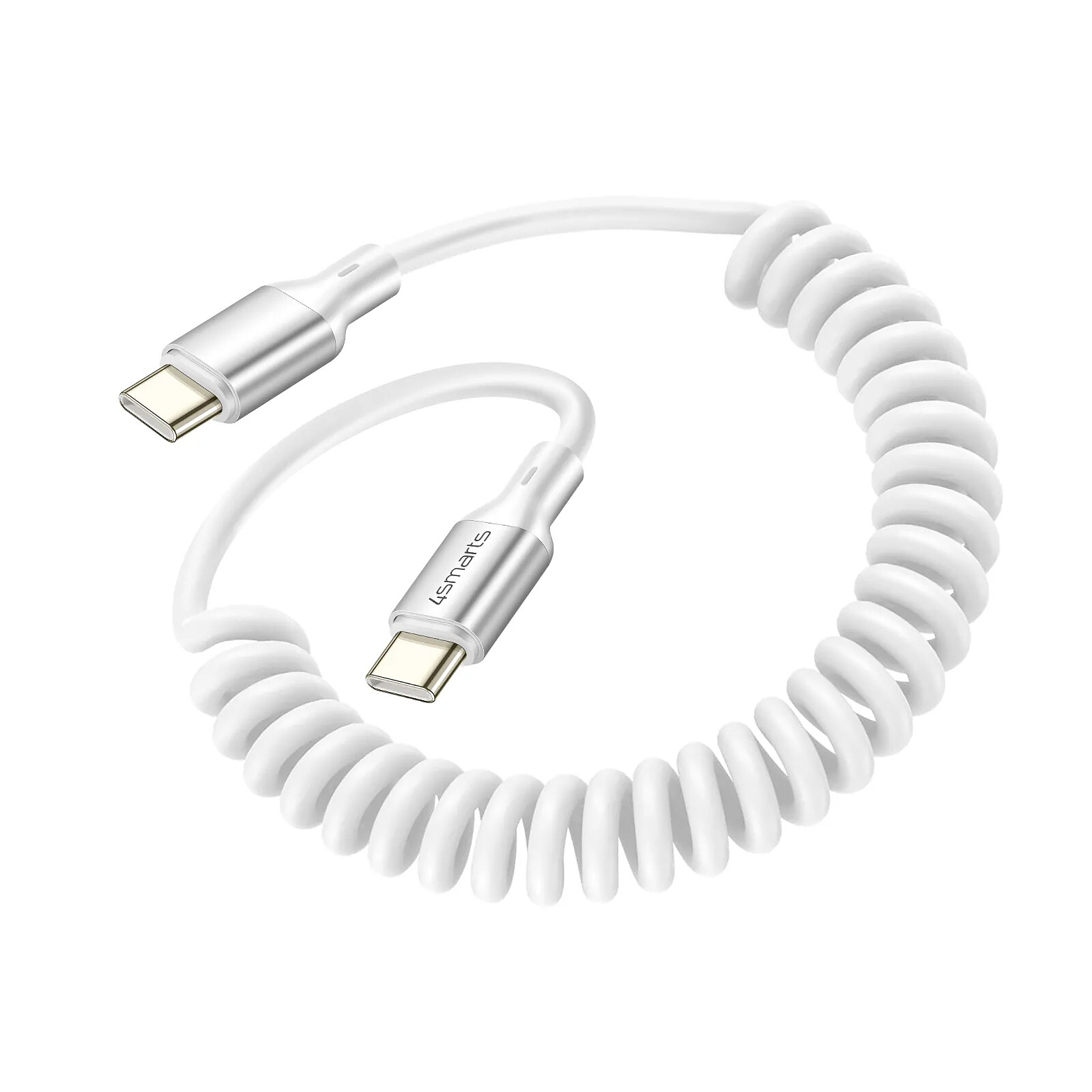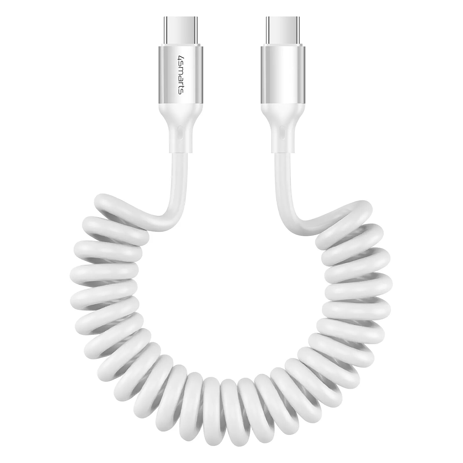 4smarts Câble USB-C vers USB-C 100W 480 Mb/s Spiralé Rétractable 12 à 50cm Blanc