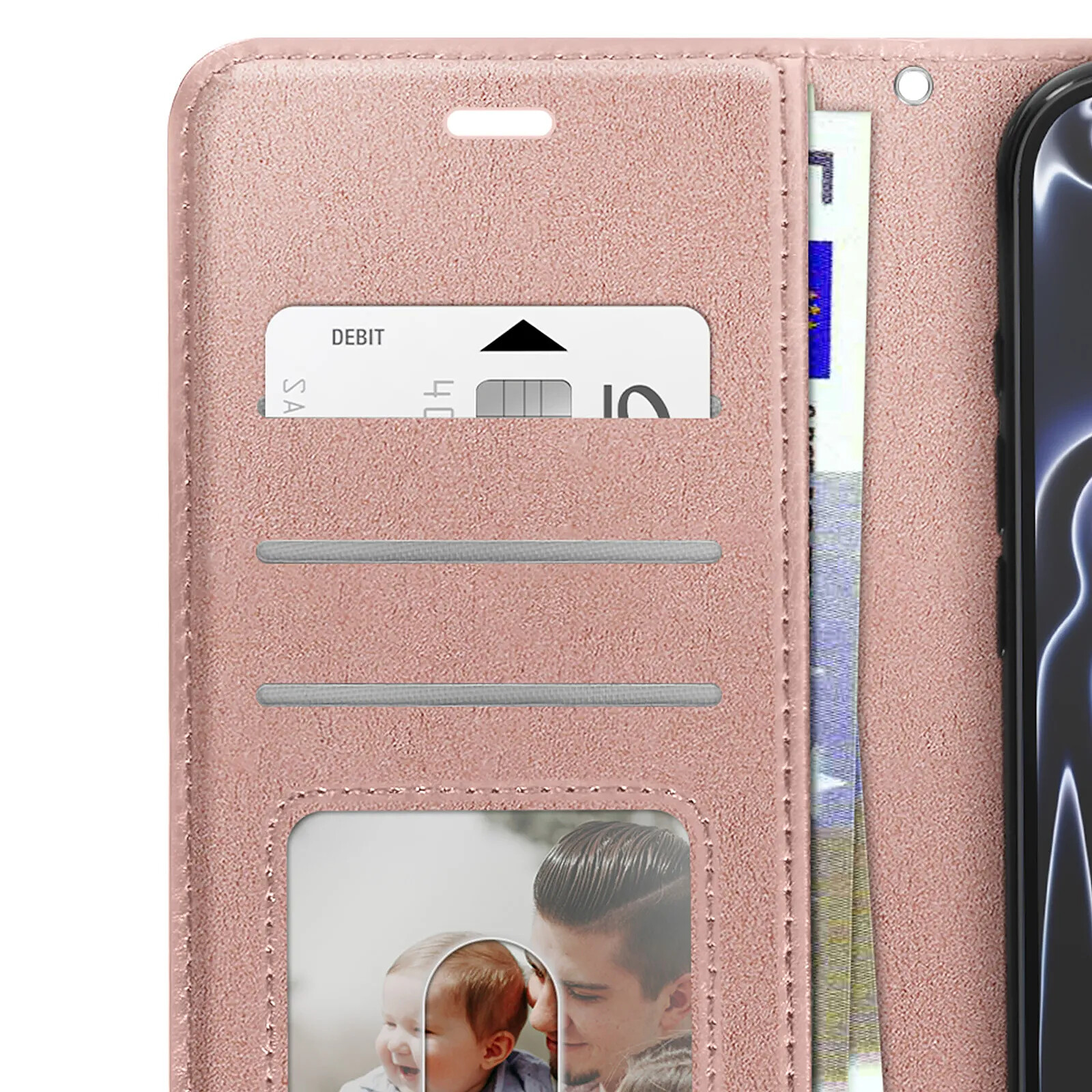 Cet étui portefeuille rose doré pour iPhone 17 Pro, signé Mayaxess, associe un revêtement grainé et satiné à une conception pratique pour un usage quotidien. Le rabat intérieur intègre trois fentes pour cartes, une poche transparente pour photo ou pièce d'identité et un compartiment latéral pour billets. La coque interne en TPU souple protège le smartphone et la dragonne amovible facilite la prise en main.