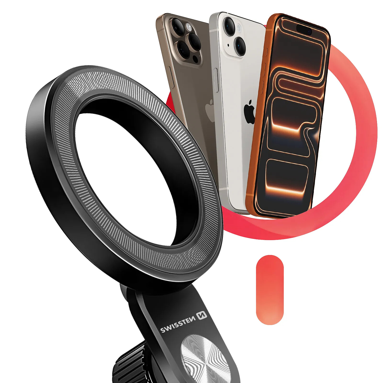 Swissten Support MagSafe pour iPhone Fixation Grip Tout Terrain Ajustable et Rotatif Noir |