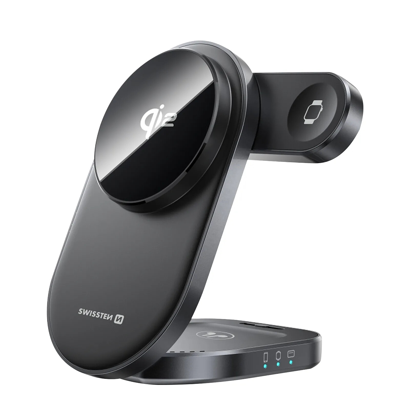 Swissten Station de Charge Qi2 3 en 1 pour iPhone MagSafe / AirPods / Watch Pliable Noir