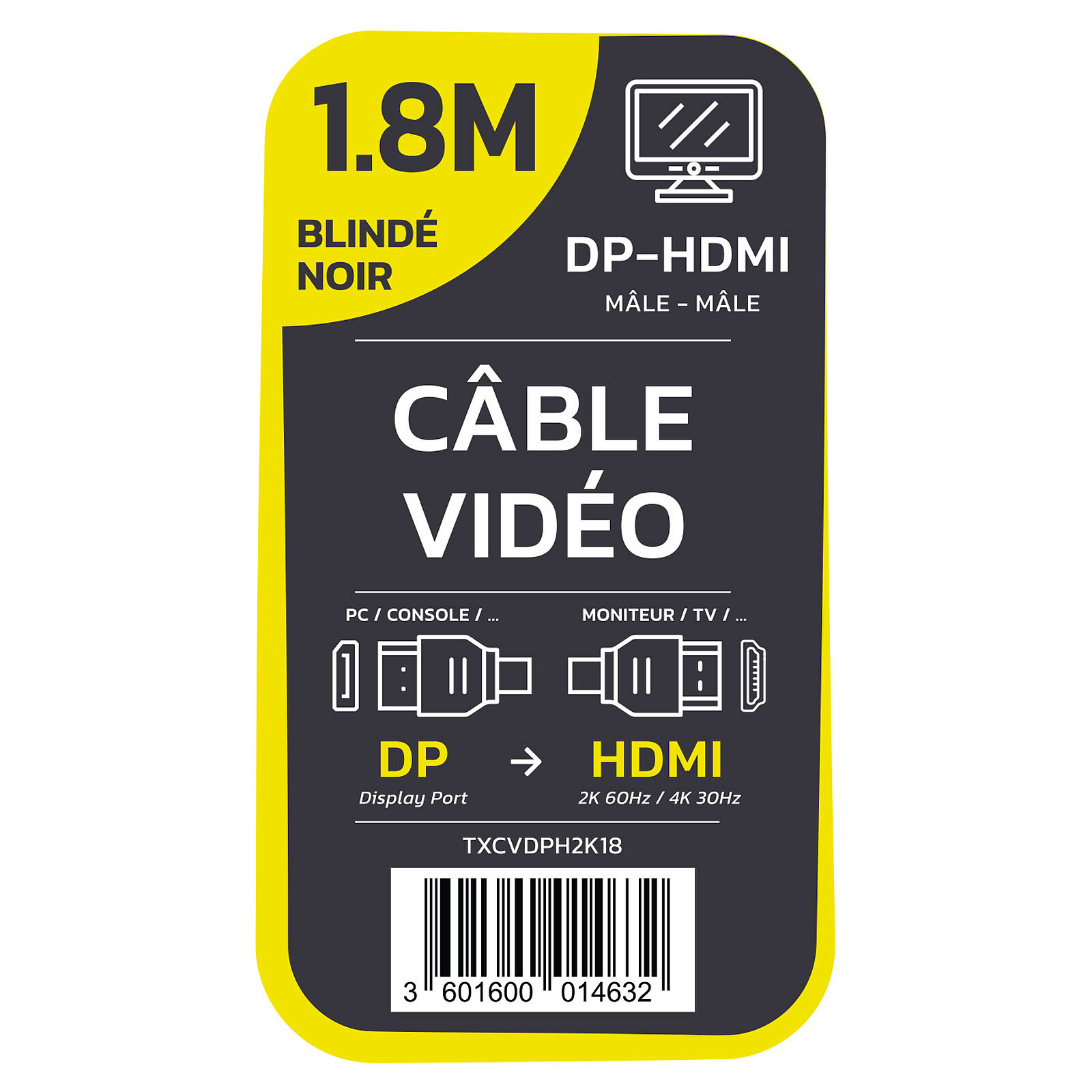 TEXTORM Câble DisplayPort vers HDMI blindé 4K - Mâle/Mâle - 1.8 M |