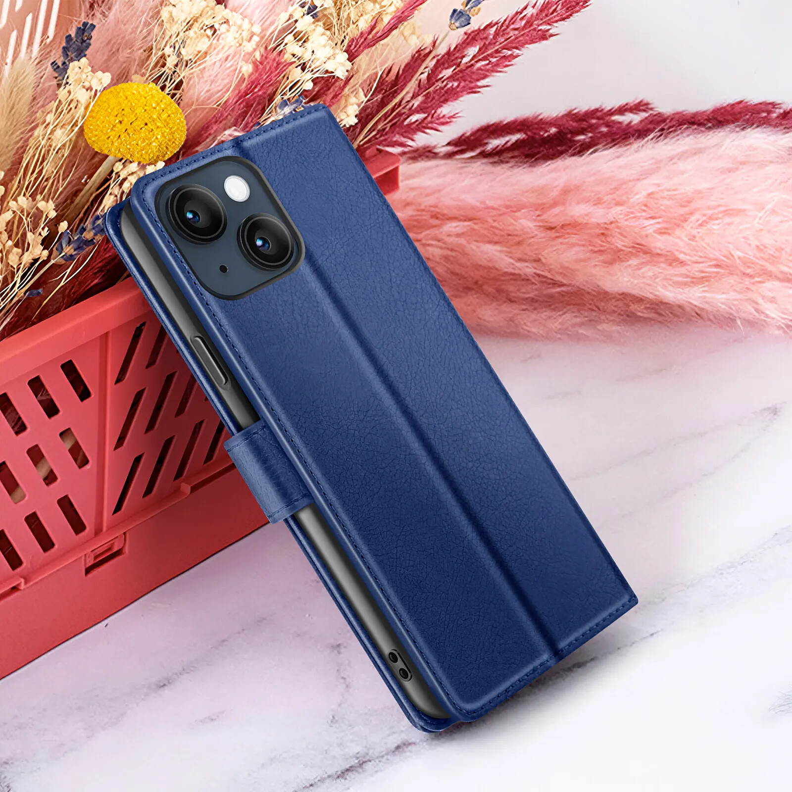 Étui portefeuille compatible iPhone 14 avec fonction support horizontal. Intérieur avec deux emplacements cartes et fermeture magnétique discrète. Protège l'écran et le dos du smartphone tout en offrant un design élégant. Parfait pour une utilisation quotidienne et multimédia.