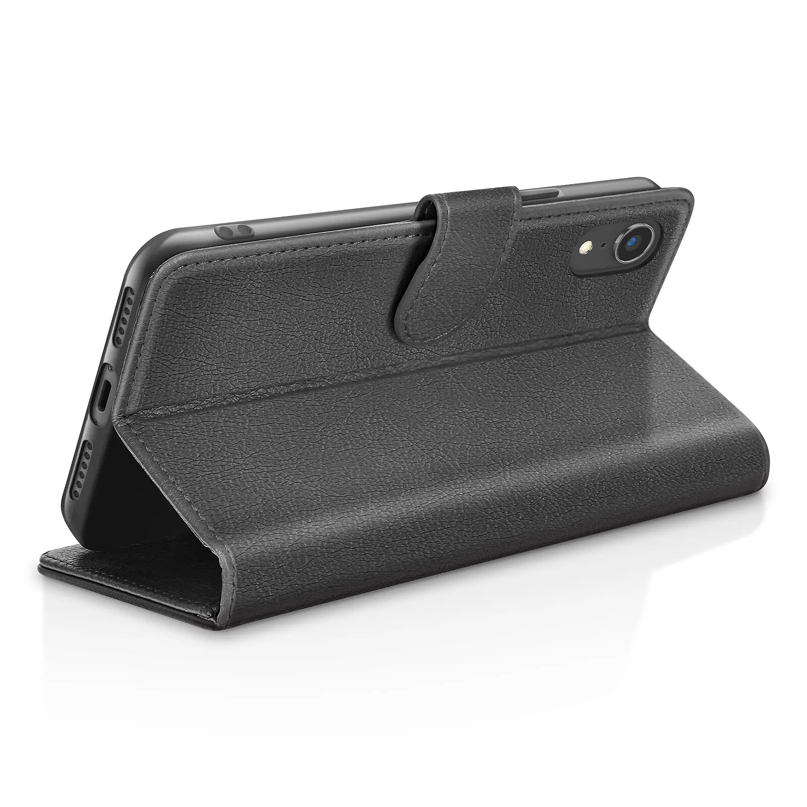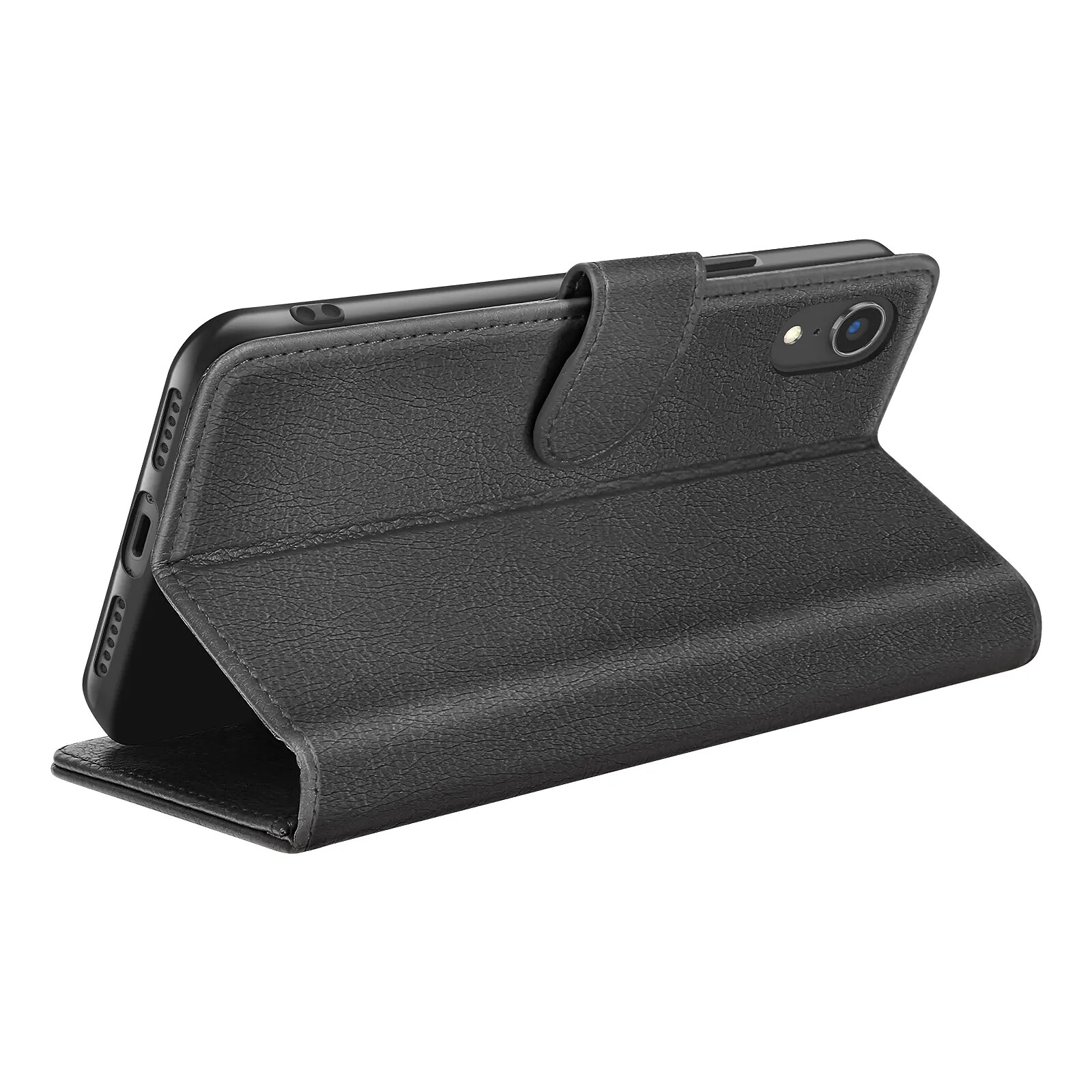 Cet étui portefeuille Zanaé noir pour iPhone XR présente une texture antiglisse et chic