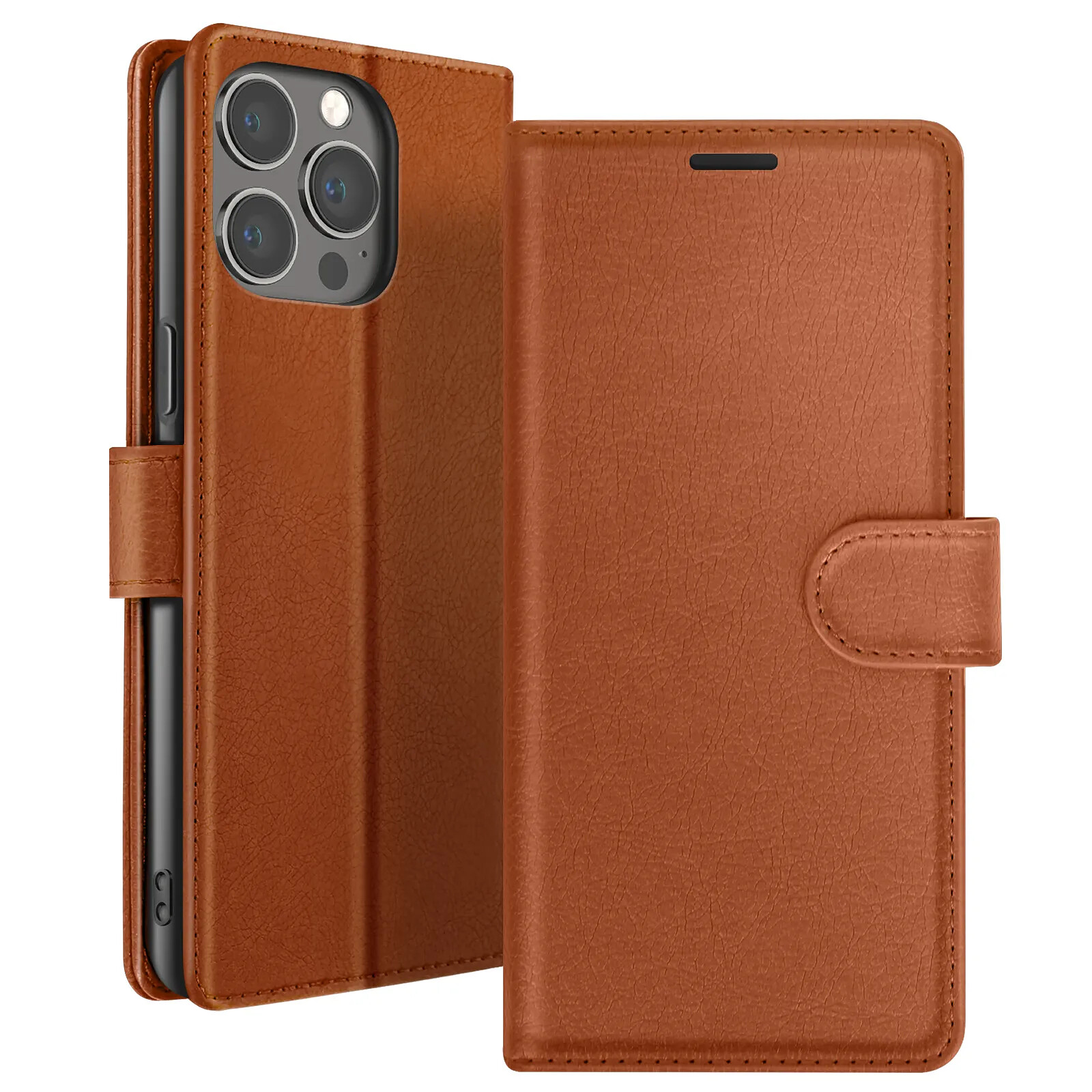 Zanaé Étui Portefeuille pour iPhone 13 Pro Max Support et Languette Magnétique Marron