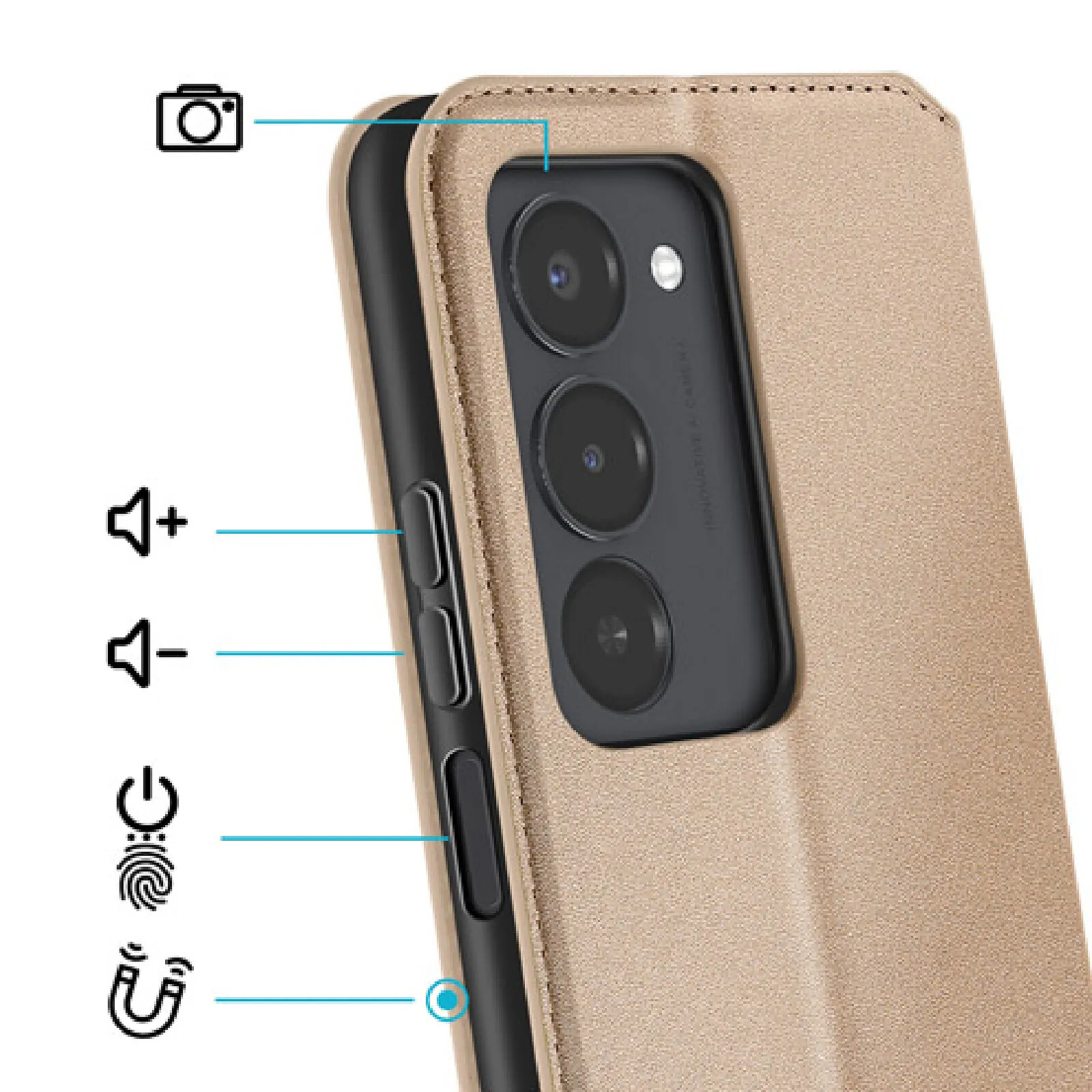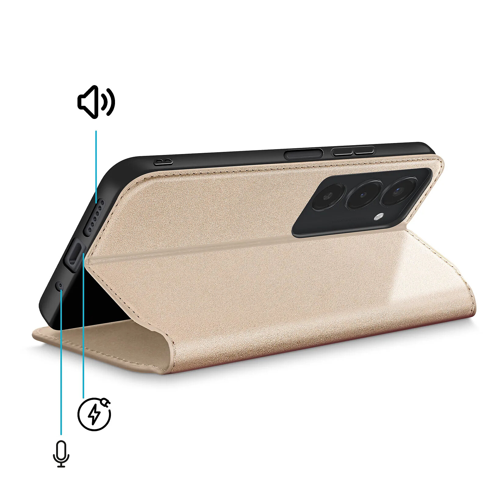 Avizar Étui pour Xiaomi Redmi 15 5G Séries Classic avec Porte-carte et Support Vidéo Dorée