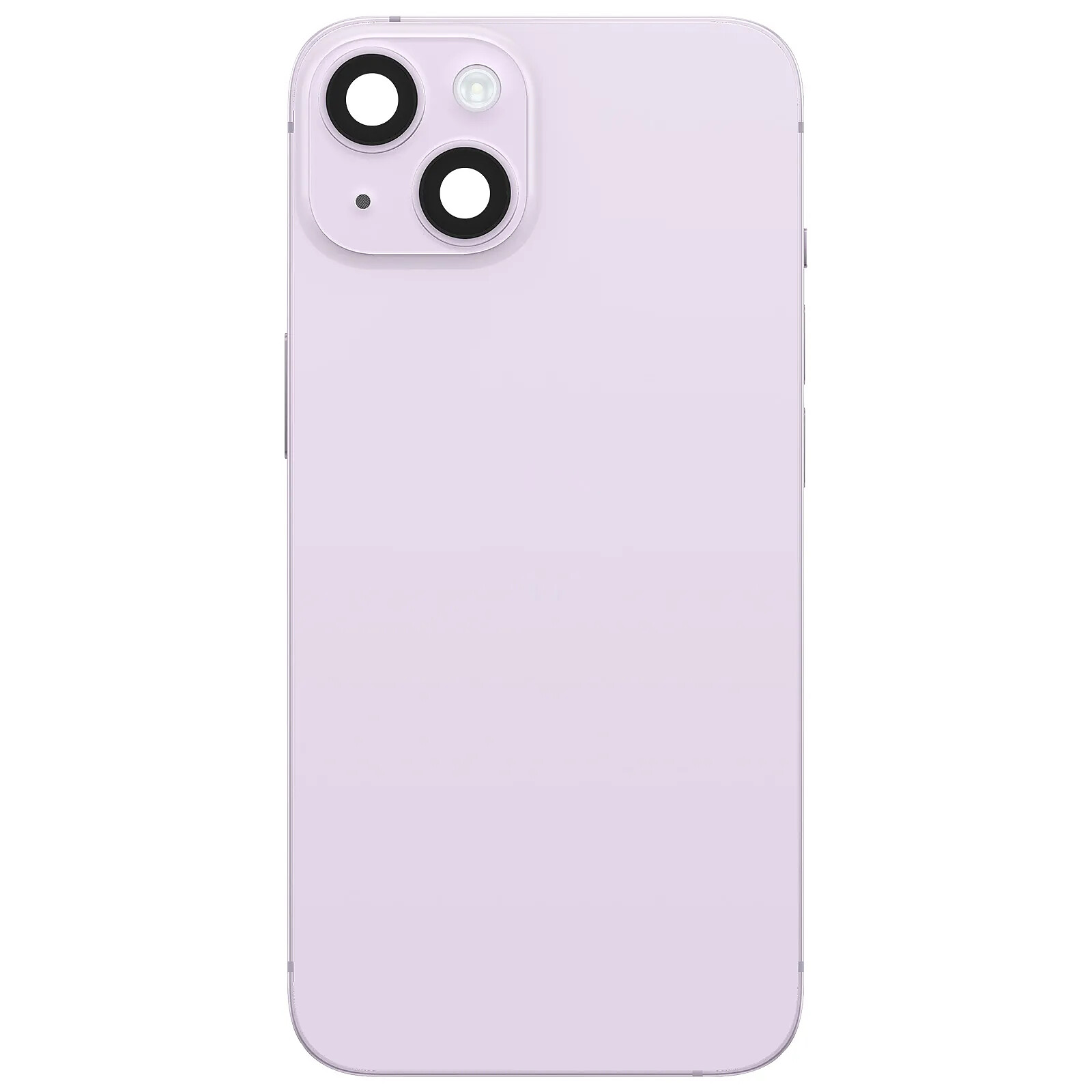 • Clappio Châssis Complet pour iPhone 14 avec Vitre Arrière et Lentilles Caméra Violet clair - Châssis complet prémonté avec vitre arrière intégrée permettant de remplacer rapidement un dos fissuré ou un cadre endommagé