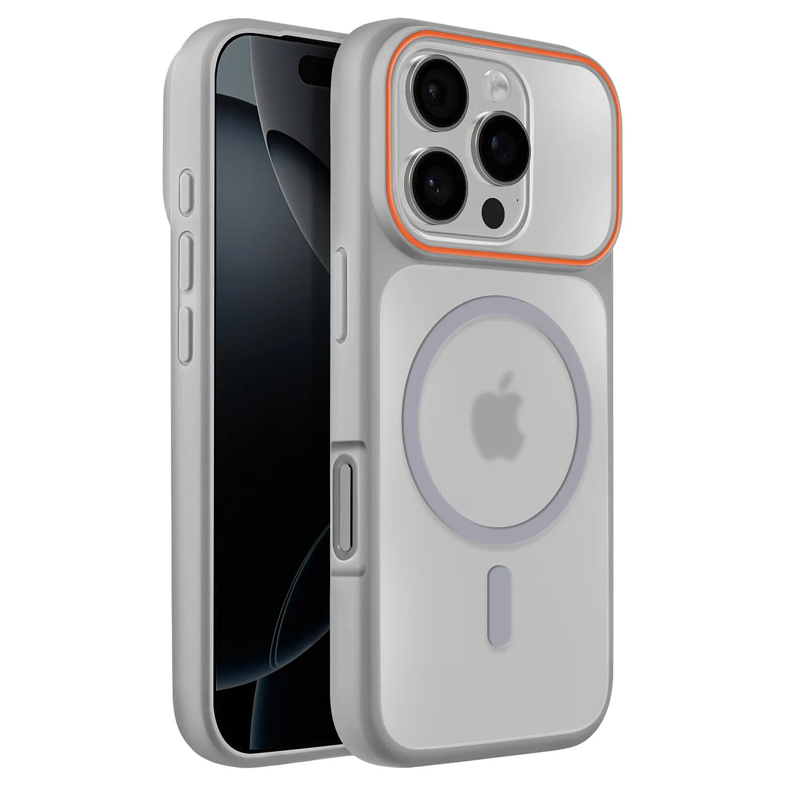 Protège efficacement l'iPhone 16 Pro grâce à une coque MagSafe bimatière associant un dos rigide en polycarbonate fumé mat et un cadre en silicone semi rigide, intégrant un système magnétique compatible avec les chargeurs et accessoires MagSafe, une surépaisseur moulée pour le bloc caméra, une bordure avant surélevée de 2 mm pour l'écran, ainsi que des découpes précises et des boutons redessinés pour une utilisation fluide et sécurisée au quotidien.