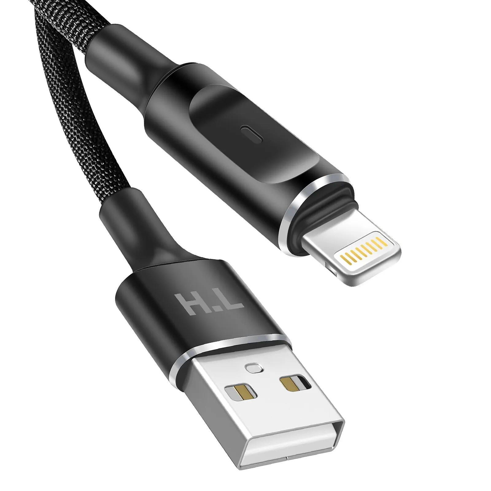 Avizar Câble USB-A vers Lightning avec LED et Charge Rapide 2,4A Nylon Tressé 1,5m Noir |