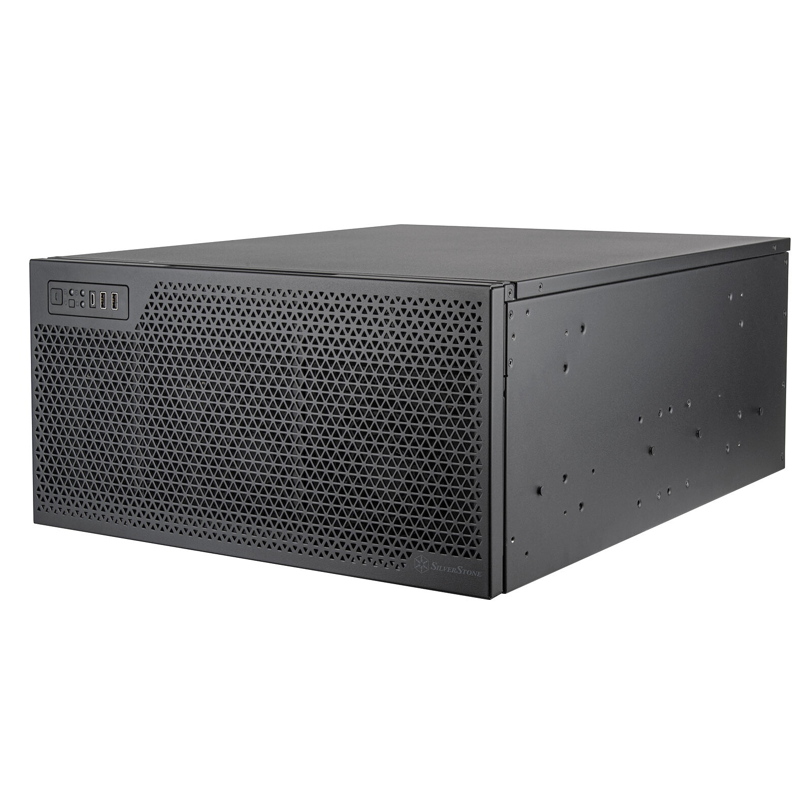 Le SilverStone RM52 est un châssis 5U rackable, conçu pour une utilisation industrielle ou domestique. Ce rack 5U offre un haut potentiel de refroidissement, avec la possibilité de recevoir jusqu'à 6 ventilateurs de 120 mm ou bien 2 radiateurs de 360 mm en façade. Le RM53-502 proposé par SilverStone supporte des cartes mères SSI-EEB, SSI-CEB et E-ATX et des cartes graphiques de 512 mm (sans ventilation en façade) ou 365 mm (avec des radiateurs doubles installés).