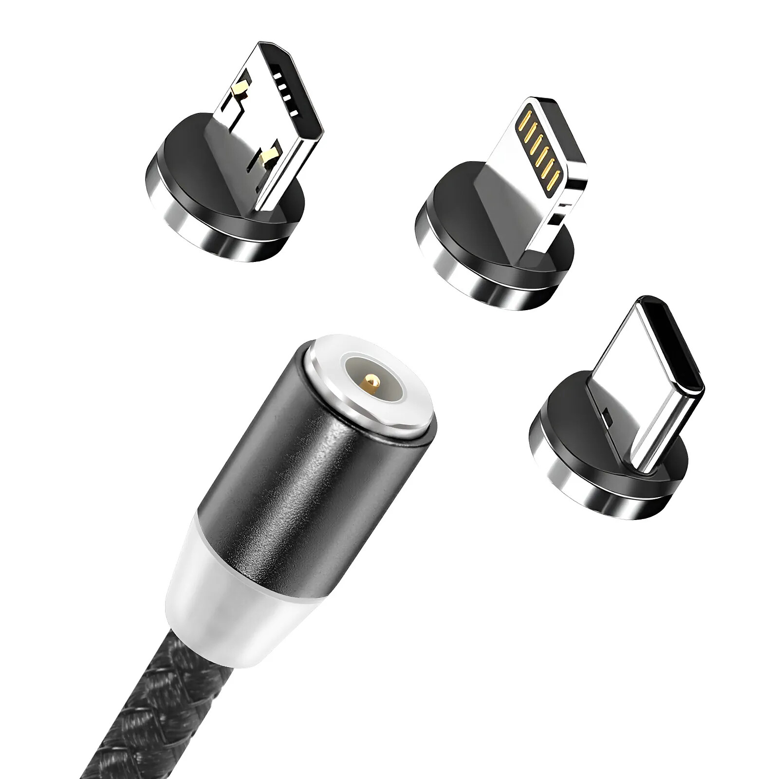Avizar Câble Magnétique 3-en-1 USB-C / Lightning / Micro-USB vers USB-A 1m Noir |