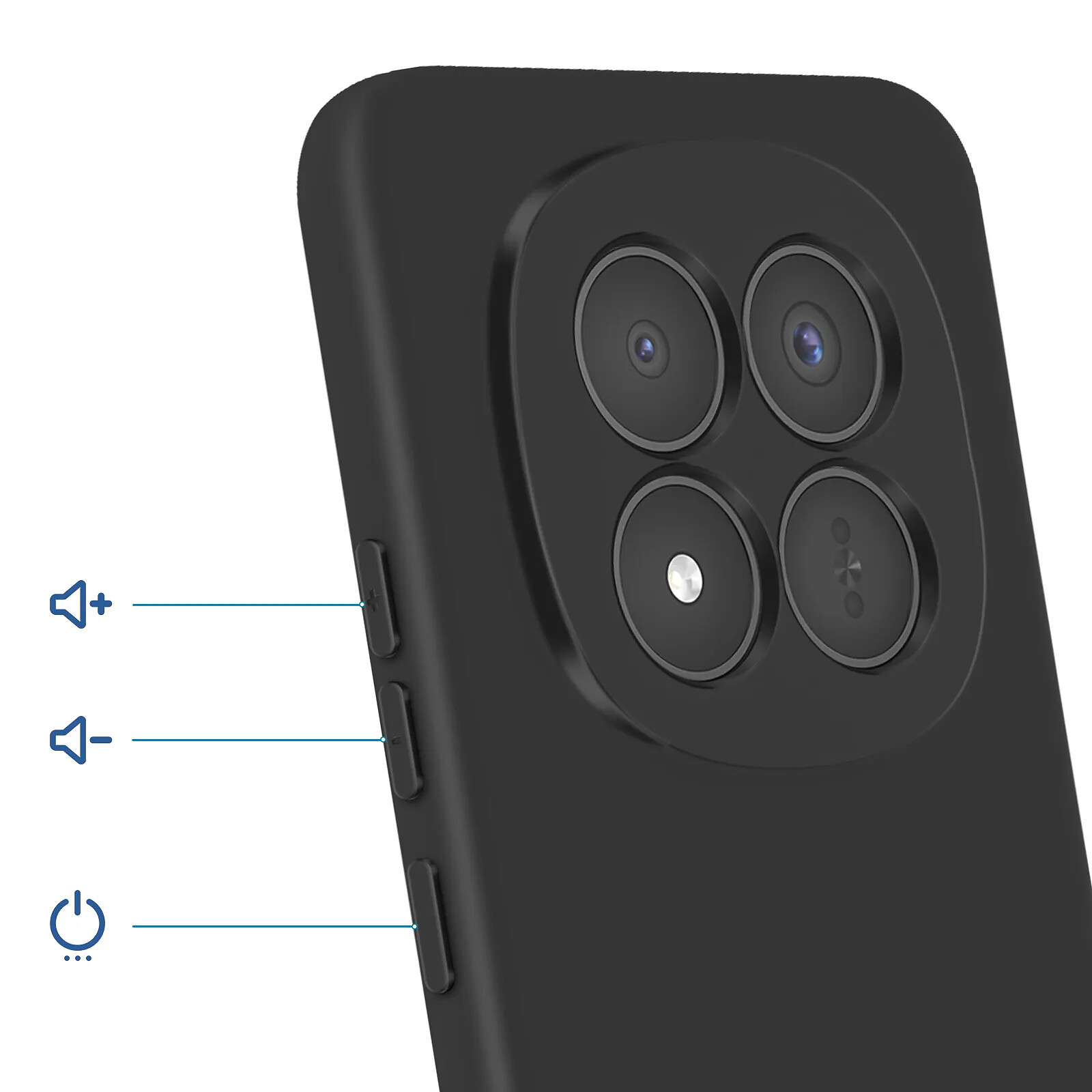 Coque en silicone semi rigide conçue sur mesure pour Redmi Note 15 Pro Plus 5G. Elle protège efficacement contre les chocs, rayures et usure quotidienne. Son intérieur en microfibre préserve la face arrière du smartphone contre les micro rayures. Le revêtement Soft Touch anti traces offre une prise en main douce et sécurisée. Le contour caméra surélevé protège les objectifs en cas de contact avec une surface plane.