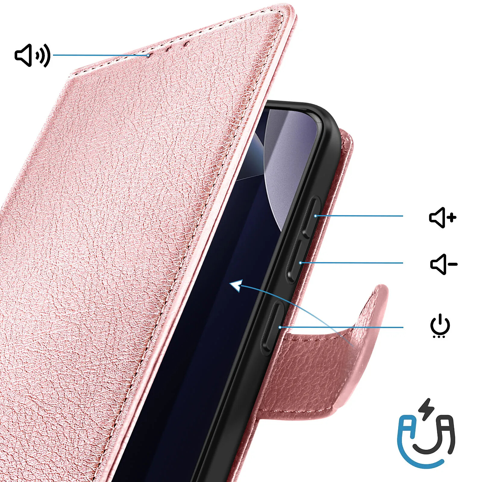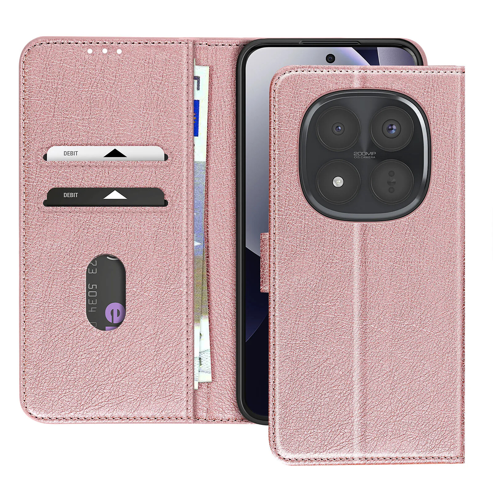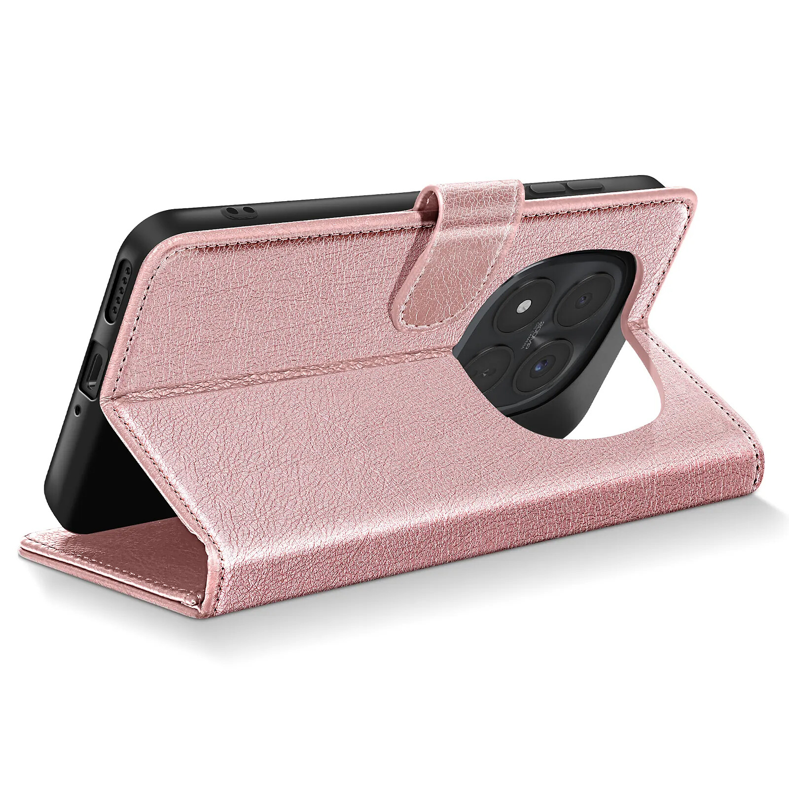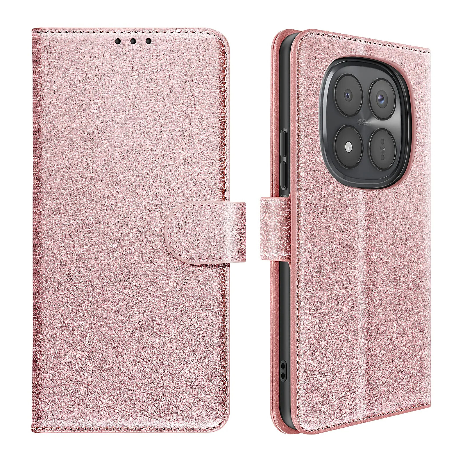 Cet étui portefeuille rose pour Xiaomi Redmi Note 15 Pro Plus 5G affiche une finition Chesterfield grainée au rendu structuré et soigné