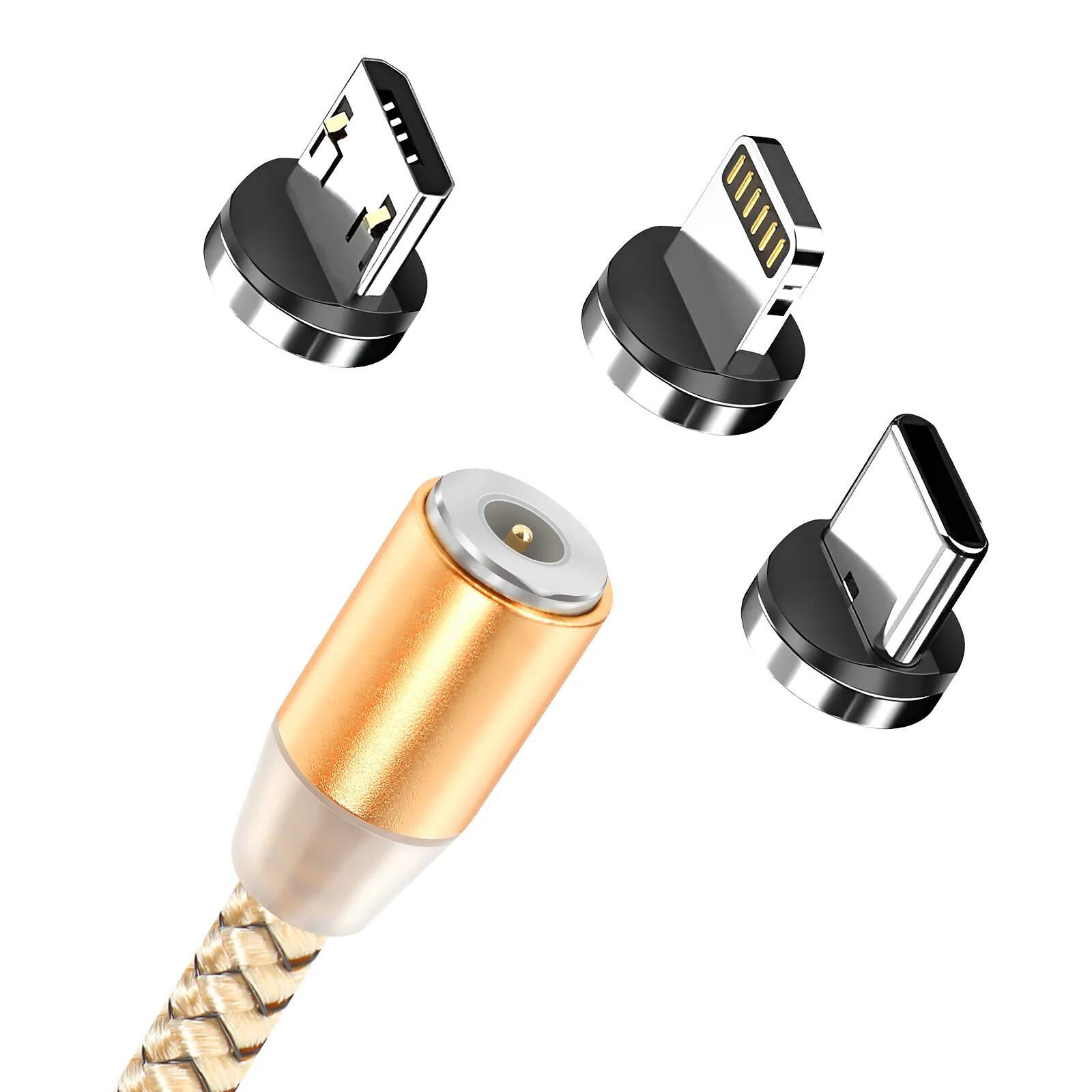 Avizar Câble Magnétique 3-en-1 USB-C / Lightning / Micro-USB vers USB-A 1m Dorée |