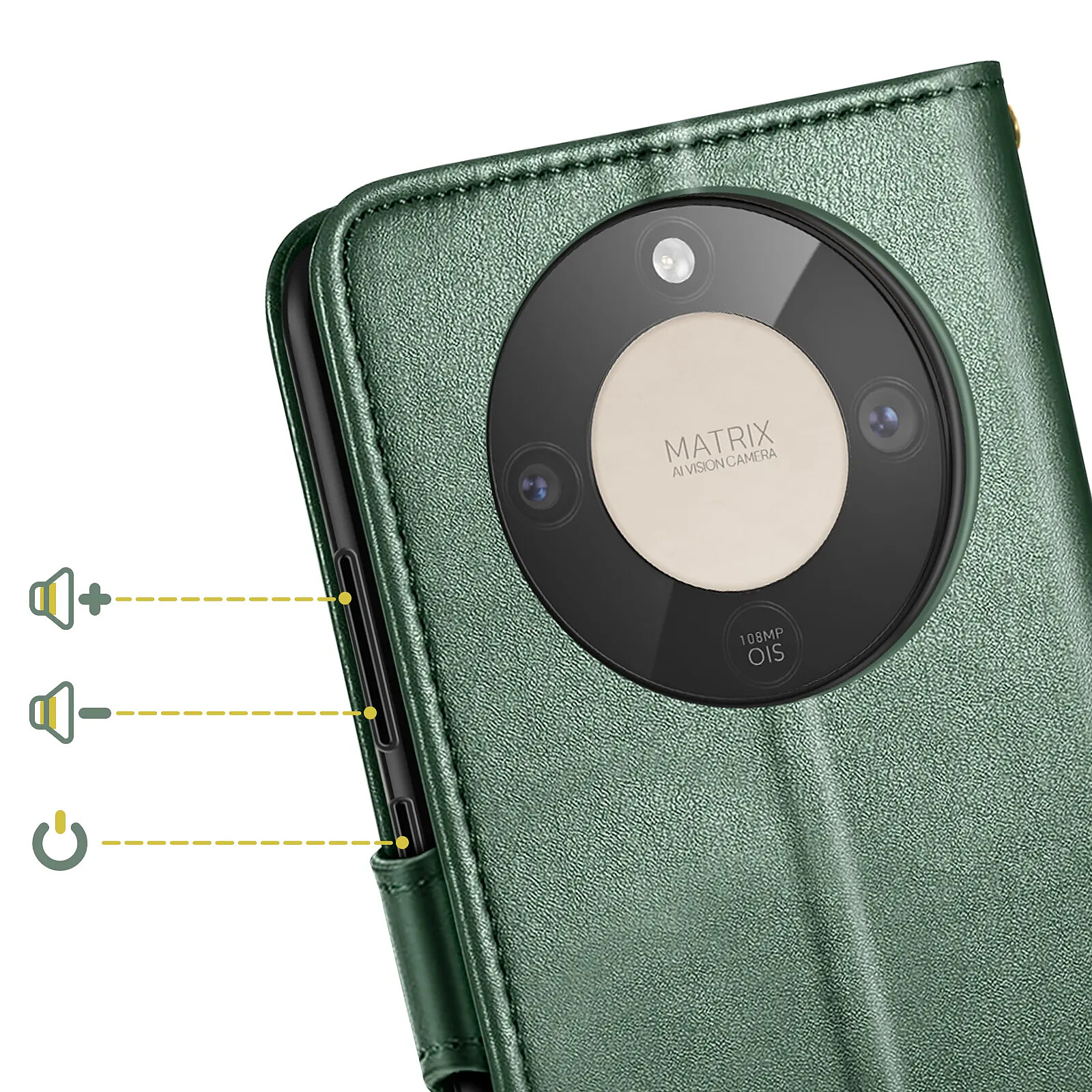 Avizar Étui Folio Portefeuille pour Honor Magic 8 Lite avec Dragonne et Porte-cartes Vert foncé |