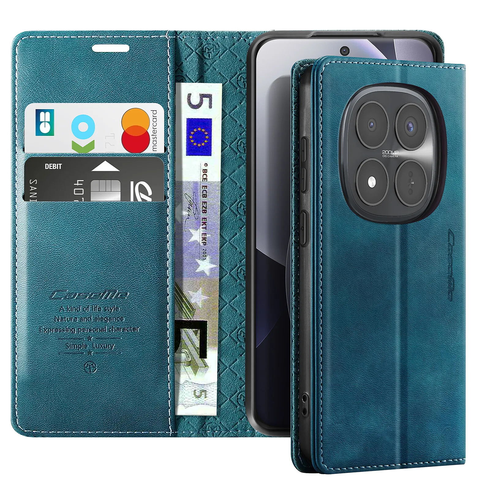 Avizar Étui Vintage pour Redmi Note 15 Pro Plus 5G Collections CaseMe avec Blocage RFID Bleu |