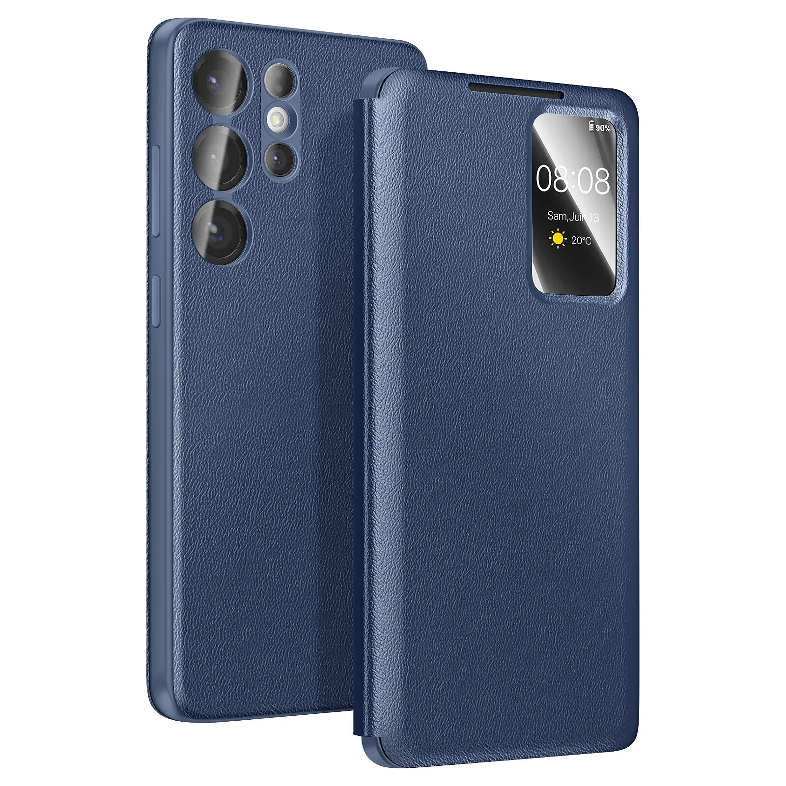 Avizar Étui pour Galaxy S26 Ultra avec Fenêtre Smart View et Porte-carte Bleu nuit