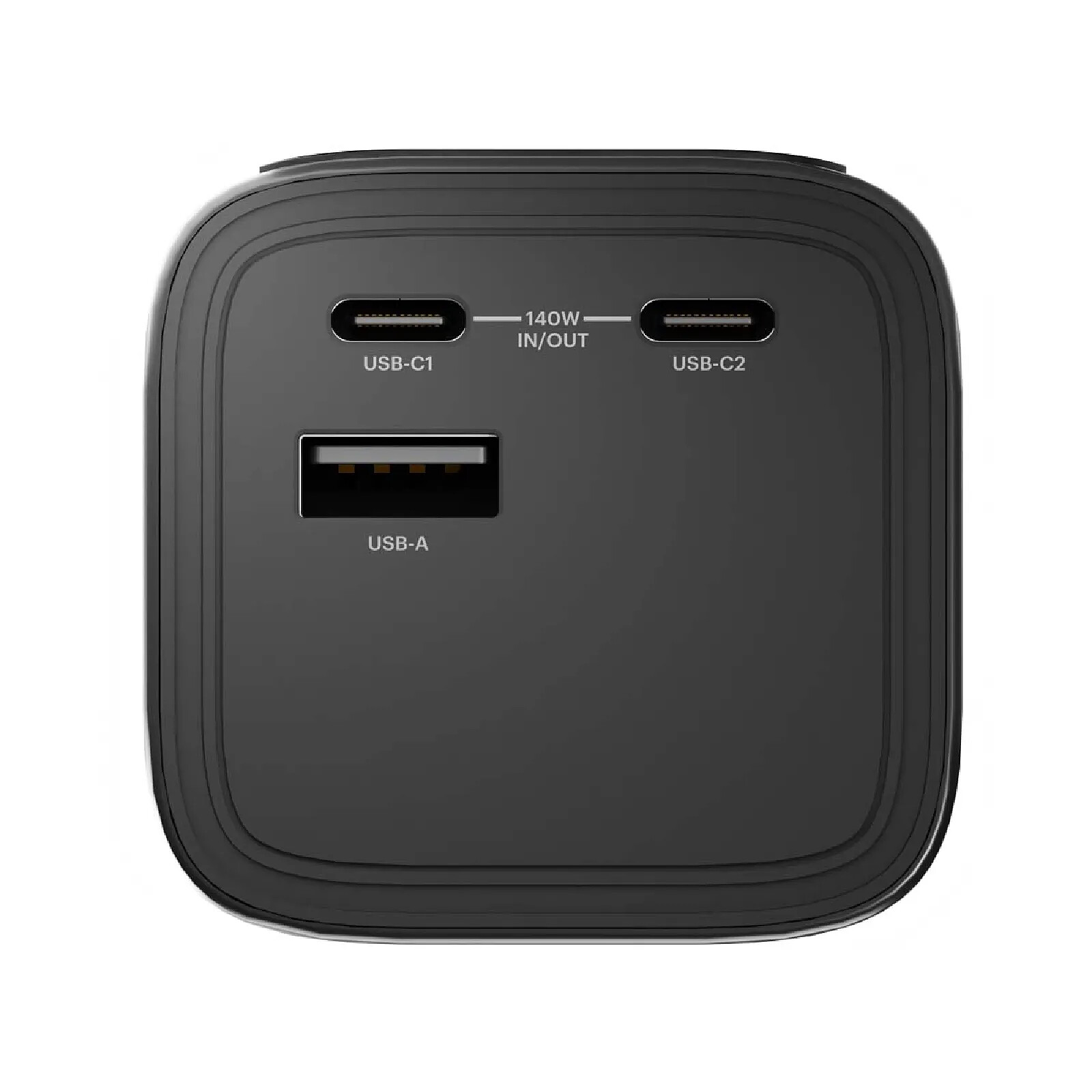 Cette batterie externe permet de recharger différents appareils mobiles lors des déplacements. Le bloc intègre une batterie li-ion de 27000mAh et dispose de deux ports USB-C ainsi que d'un port USB-A. La puissance maximale atteint 148W et convient à la recharge d'un ordinateur portable d'une tablette ou d'un smartphone. L'écran intégré indique le niveau d'énergie restant et l'activité de charge des ports utilisés.