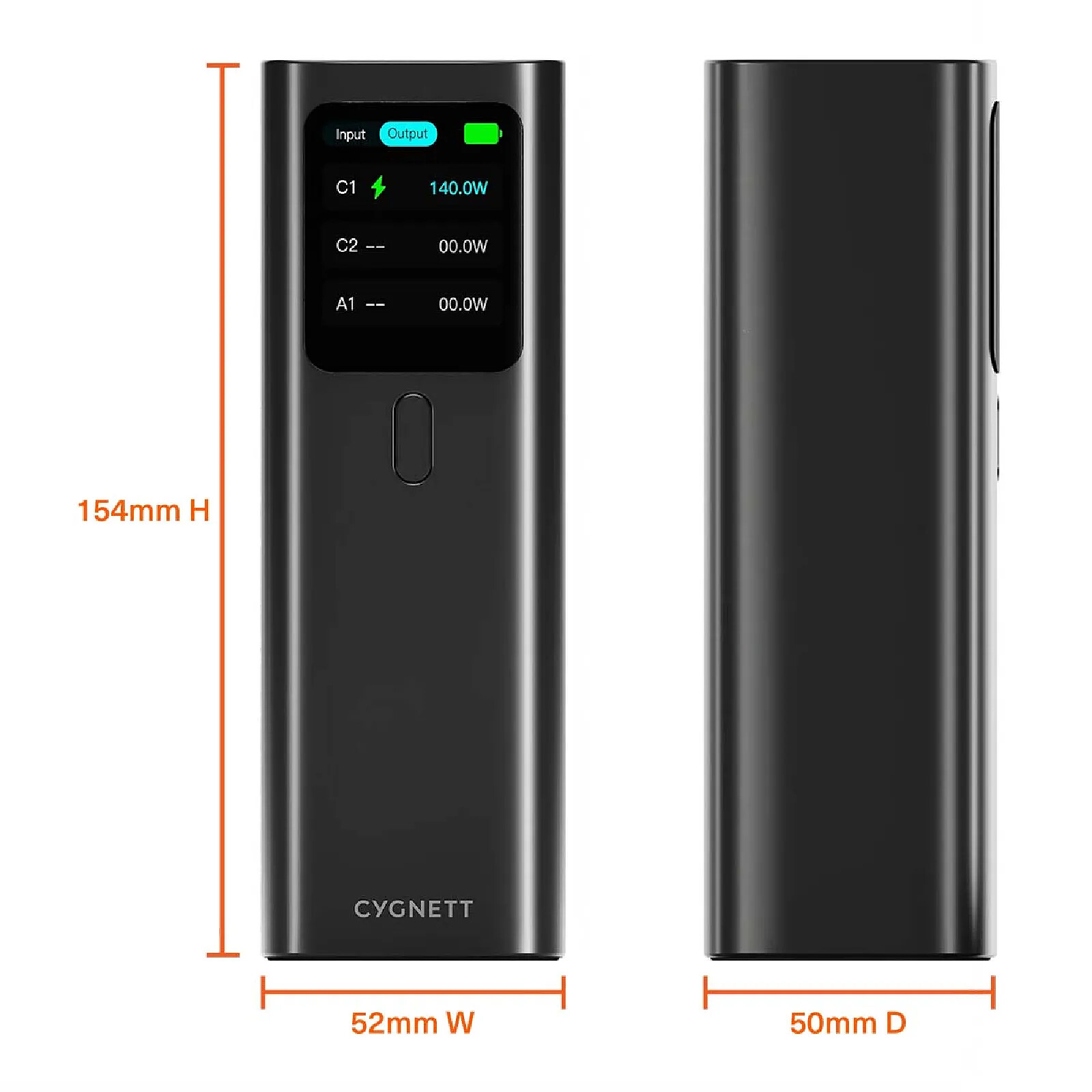 CYGNETT Batterie Externe USB-C / USB-A 27000mAh 148W avec Écran d'Affichage Noir