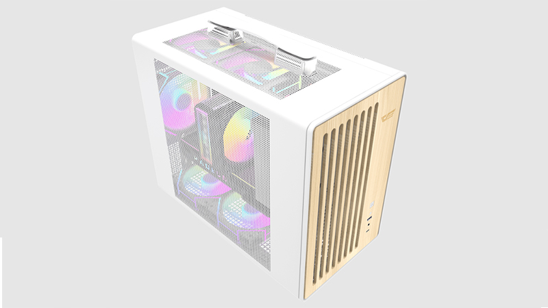 Le darkFlash WD200 est un boîtier compact conçu pour faciliter le transport et offrir une installation simple des composants. Sa poignée intégrée permet de le déplacer aisément, tandis que sa façade en placage bois de 5 mm apporte robustesse et résistance à l’humidité. La structure interne segmentée améliore l’accès à l’alimentation et simplifie l’intégration d’un modèle haut de gamme.