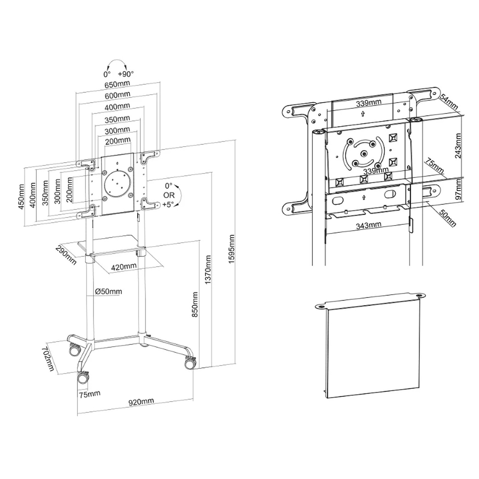 - Avec étagère multimédia pratique (capacité maximale de 5 kg)