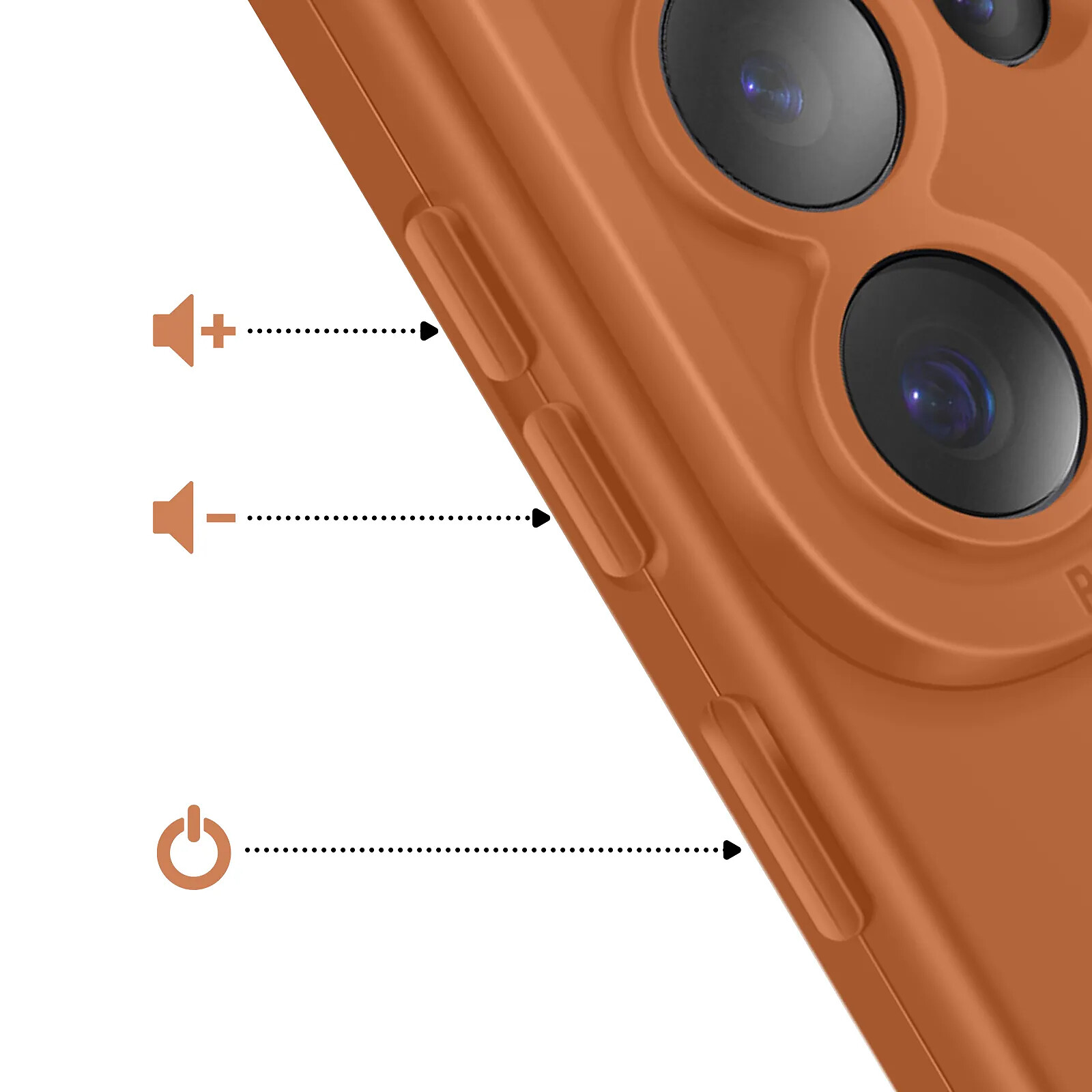 Cette coque en silicone souple marron protège efficacement votre Samsung Galaxy S26 Ultra des chocs et rayures du quotidien. Son contour renforcé autour du bloc caméra limite les impacts directs. L'intérieur en microfibre douce maintient l'arrière du téléphone impeccable. Conception précise, boutons réactifs et attache dragonne intégrée pour un usage pratique et sécurisé au quotidien.