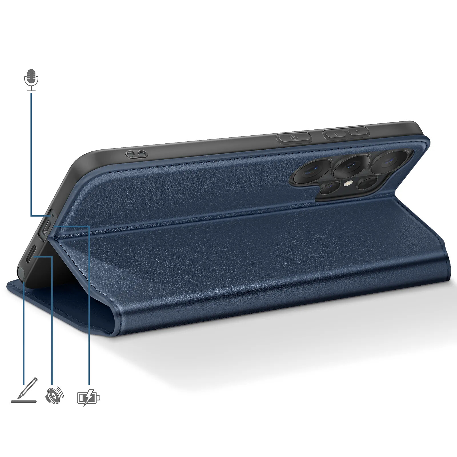 Avizar Étui à Clapet pour Galaxy S26 Ultra Magnétique Fonction Stand Classic Edition Bleu