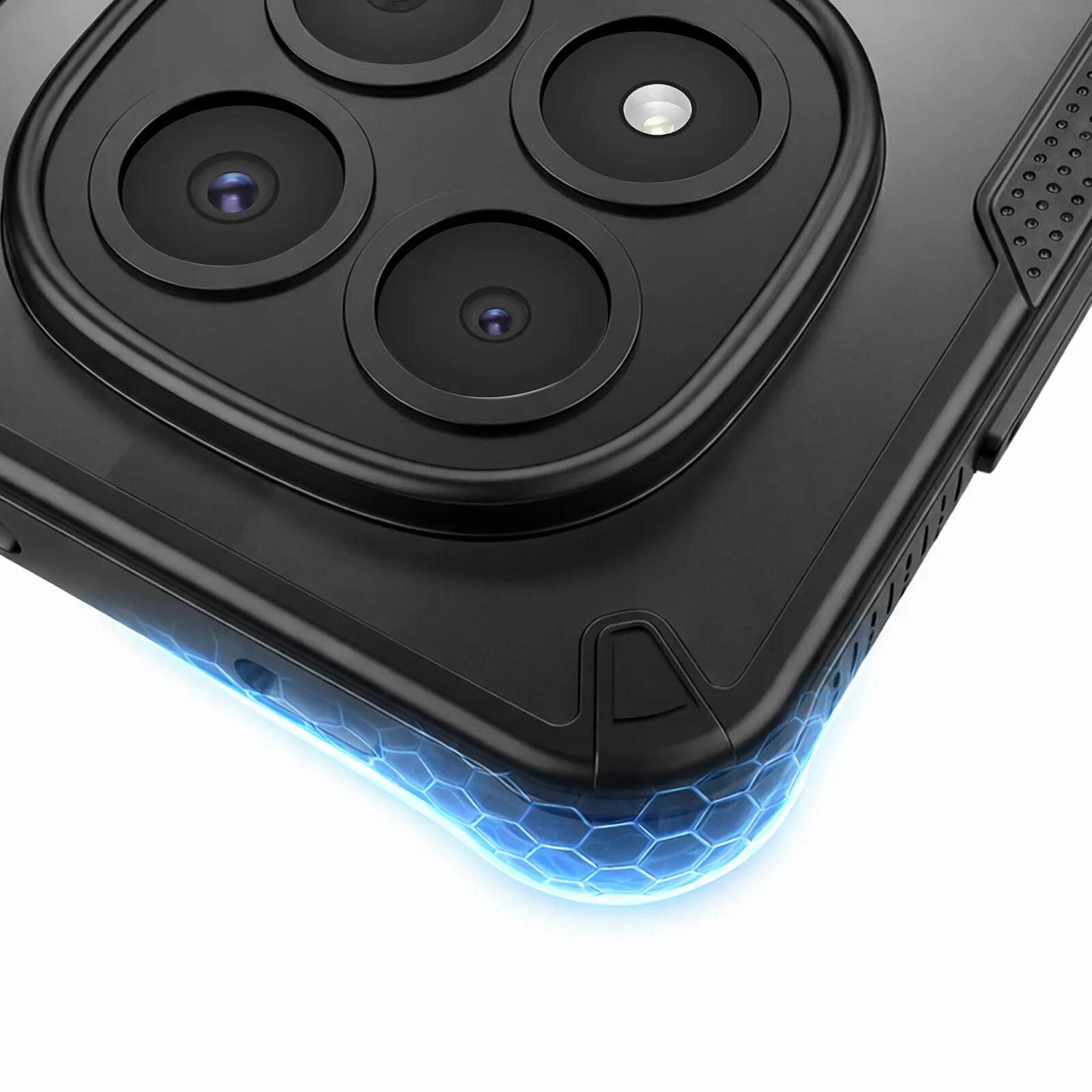 Protection antichoc bi-matière combinant polycarbonate rigide et silicone souple pour absorber efficacement les impacts