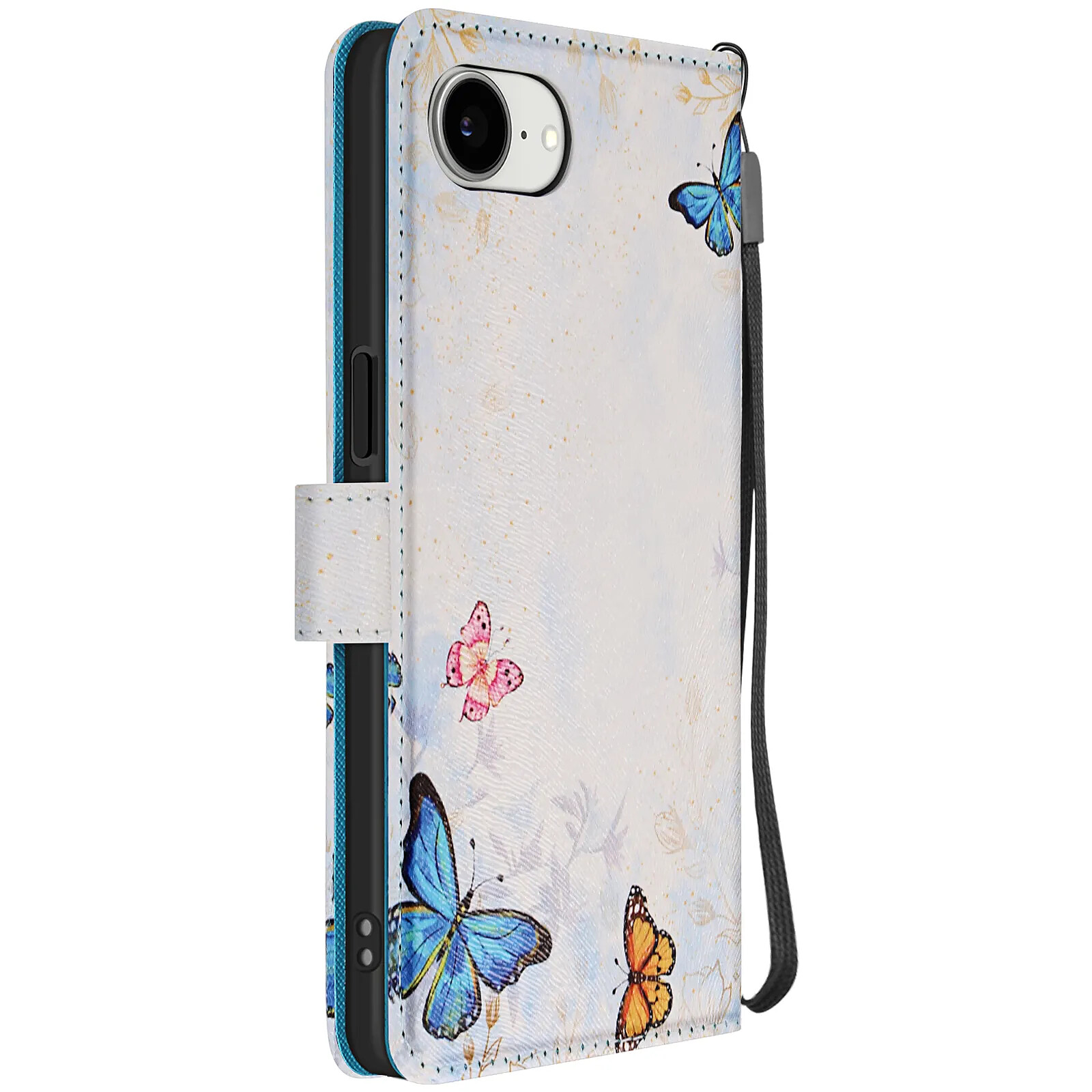 Avizar Étui Portefeuille pour iPhone 17e Motif Papillons avec Support et Dragonne Blanc