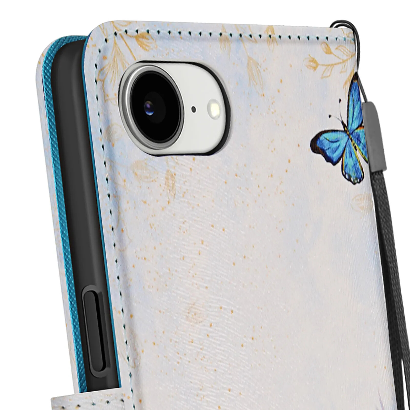 Cet étui folio Papillons allie protection et praticité pour votre iPhone 17e. Son format portefeuille intègre plusieurs emplacements pour cartes et billets afin de garder l'essentiel à portée de main. La fermeture magnétique sécurise efficacement l'appareil, tandis que la fonction support permet un usage confortable en mode vidéo. Sa dragonne offre une prise en main sûre au quotidien.