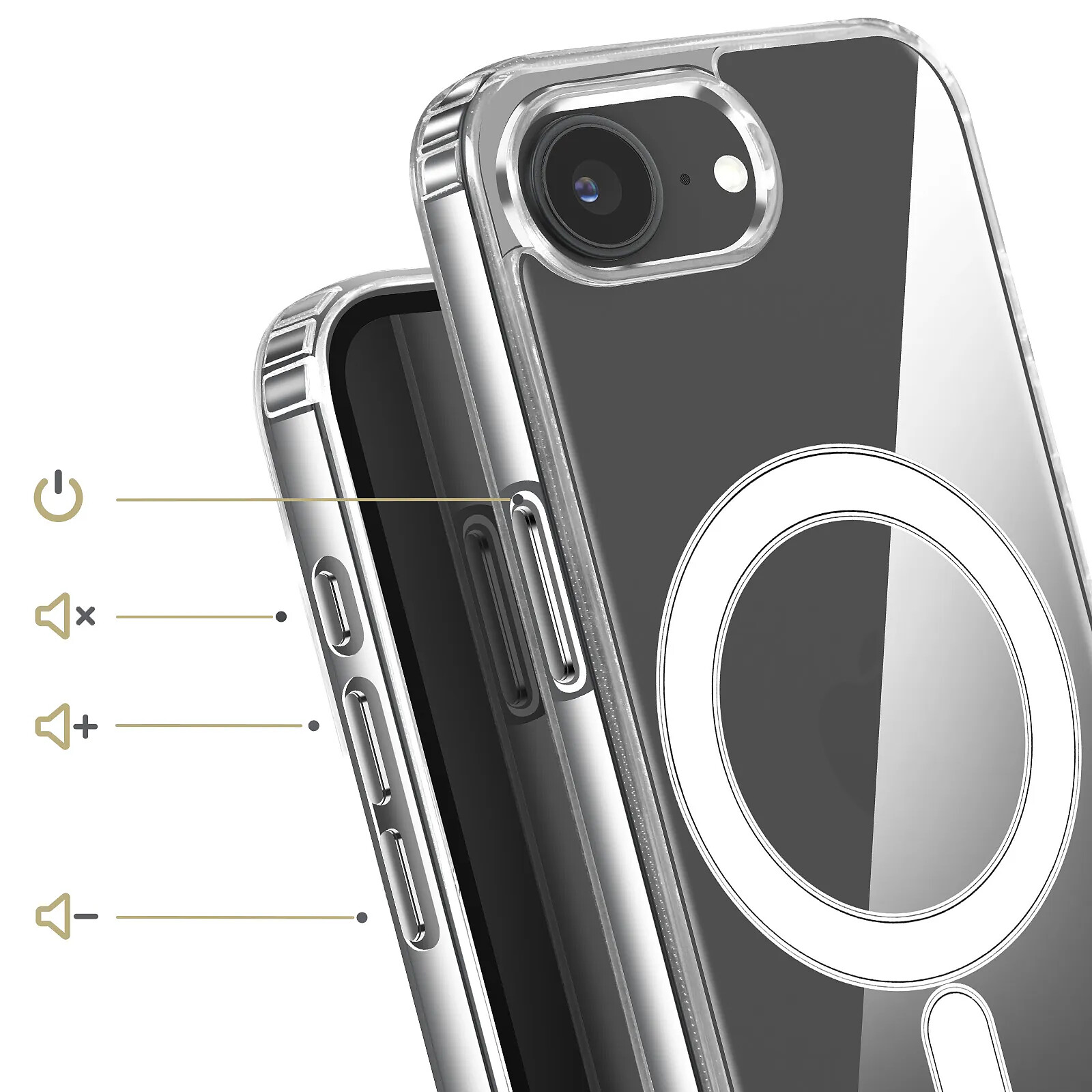 Cette coque MagSafe pour iPhone 17e assure une protection fiable au quotidien grâce à sa conception bimatière associant dos rigide et contours souples. Elle absorbe efficacement les chocs, limite les rayures et protège les zones sensibles avec ses rebords surélevés autour de l'écran et de l'appareil photo. Transparente et anti-jaunissement, elle conserve le style du téléphone tout en restant compatible avec la charge Qi et les supports magnétiques.