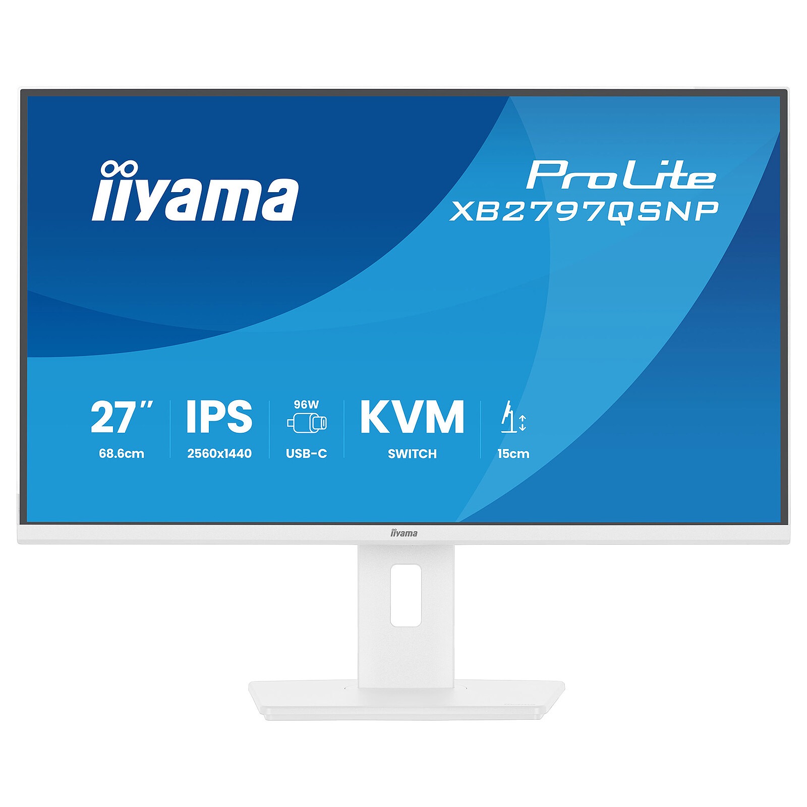 Ecran PC 2.5K - 2560 x 1440 pixels - 1 ms (MPRT) - 16/9 - Dalle IPS - 75 Hz - Adaptive-Sync - HDMI/DisplayPort/USB-C - Pivot - Hub USB - Ethernet - Blanc