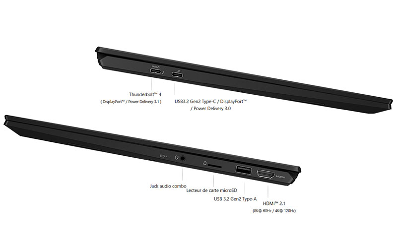 - 1 connecteur Thunderbolt 4 (USB-C) + 1 connecteur USB-C Alt Mode avec Power Delivery 3.0