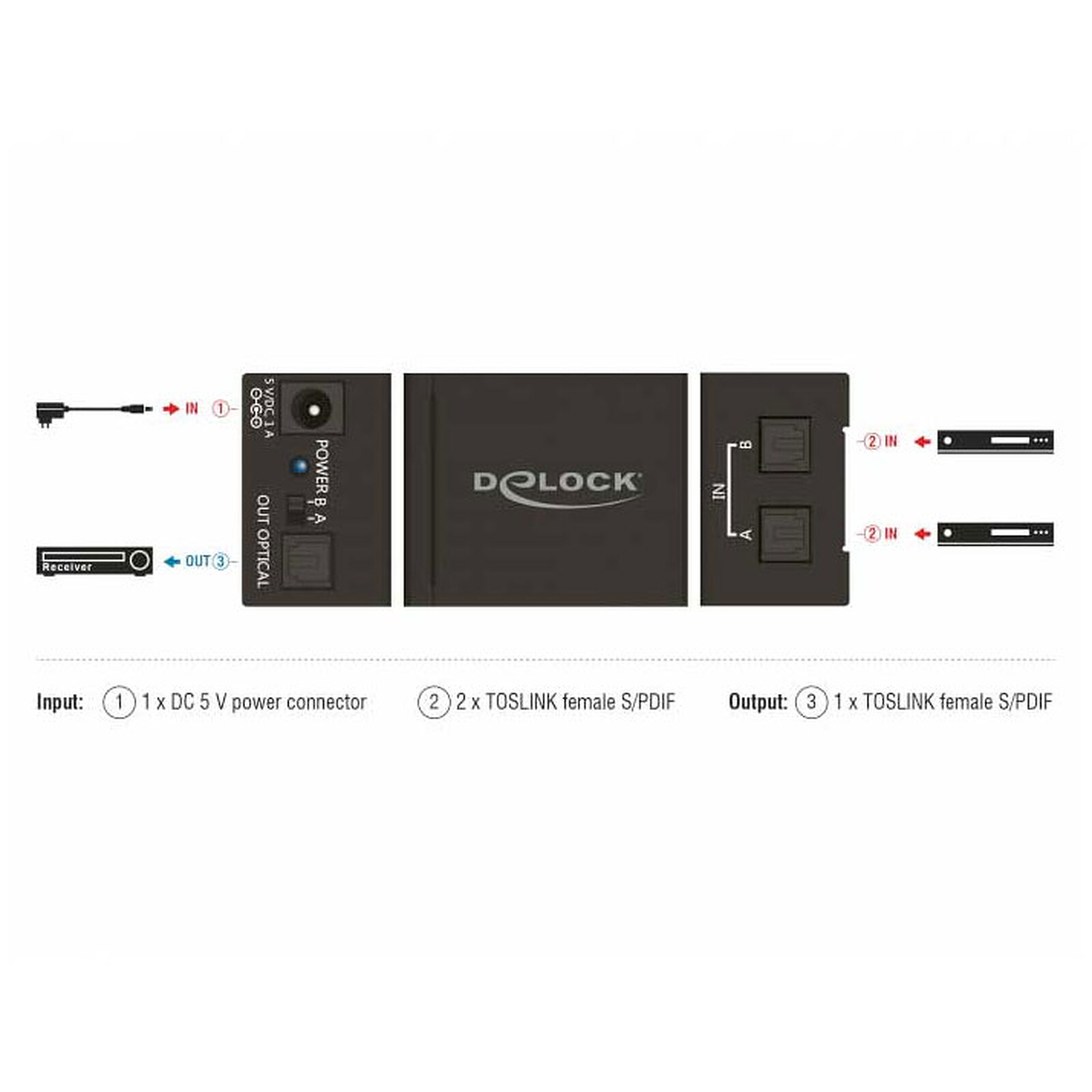 DeLock Commutateur 2 en 1 S/PDIF Toslink