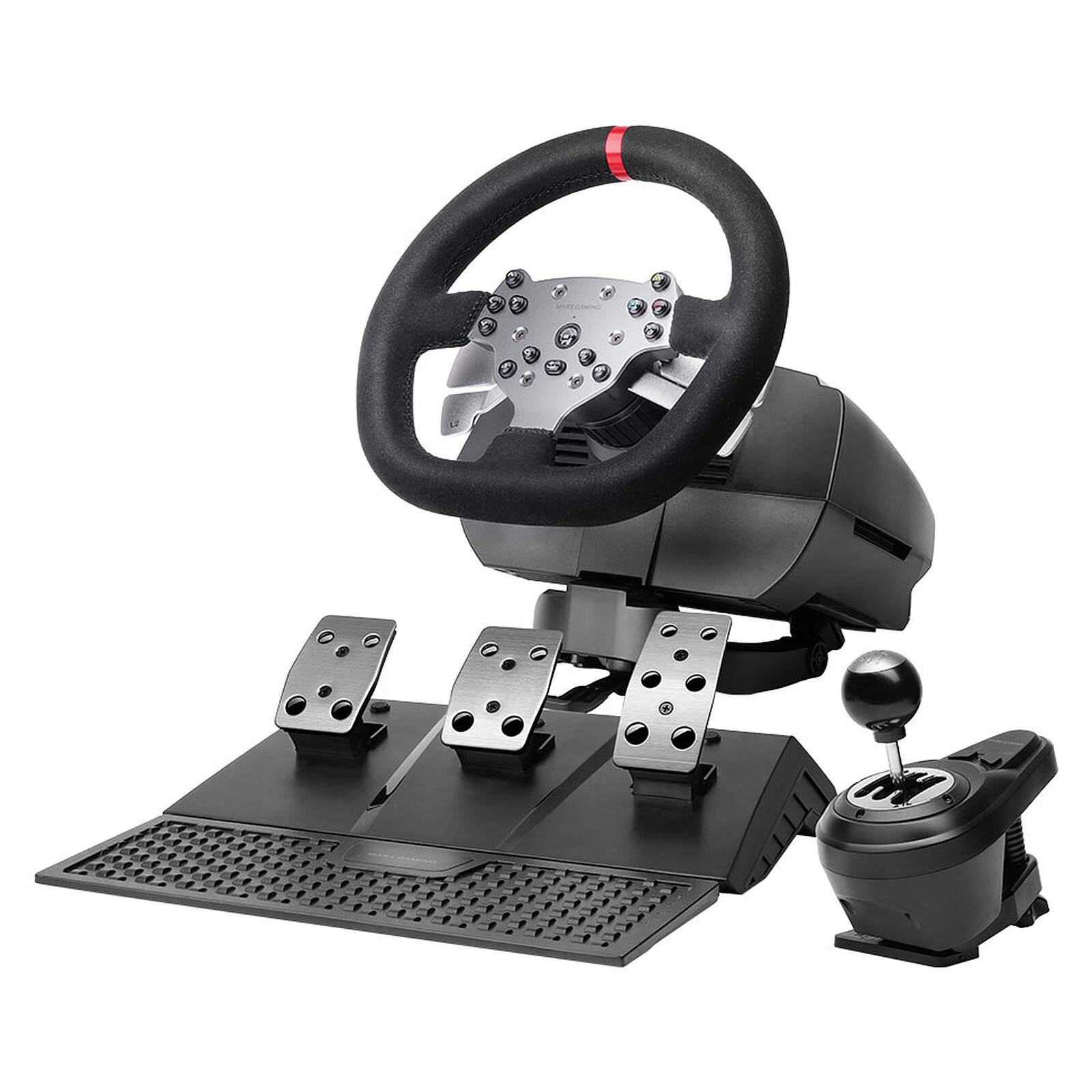 Volant de course avec retour de force pour simulation automobile - Levier de vitesse en H - Pédalier 3 pédales - 14 boutons programmables - Compatible PC / PS4 / Xbox One / Xbox Series