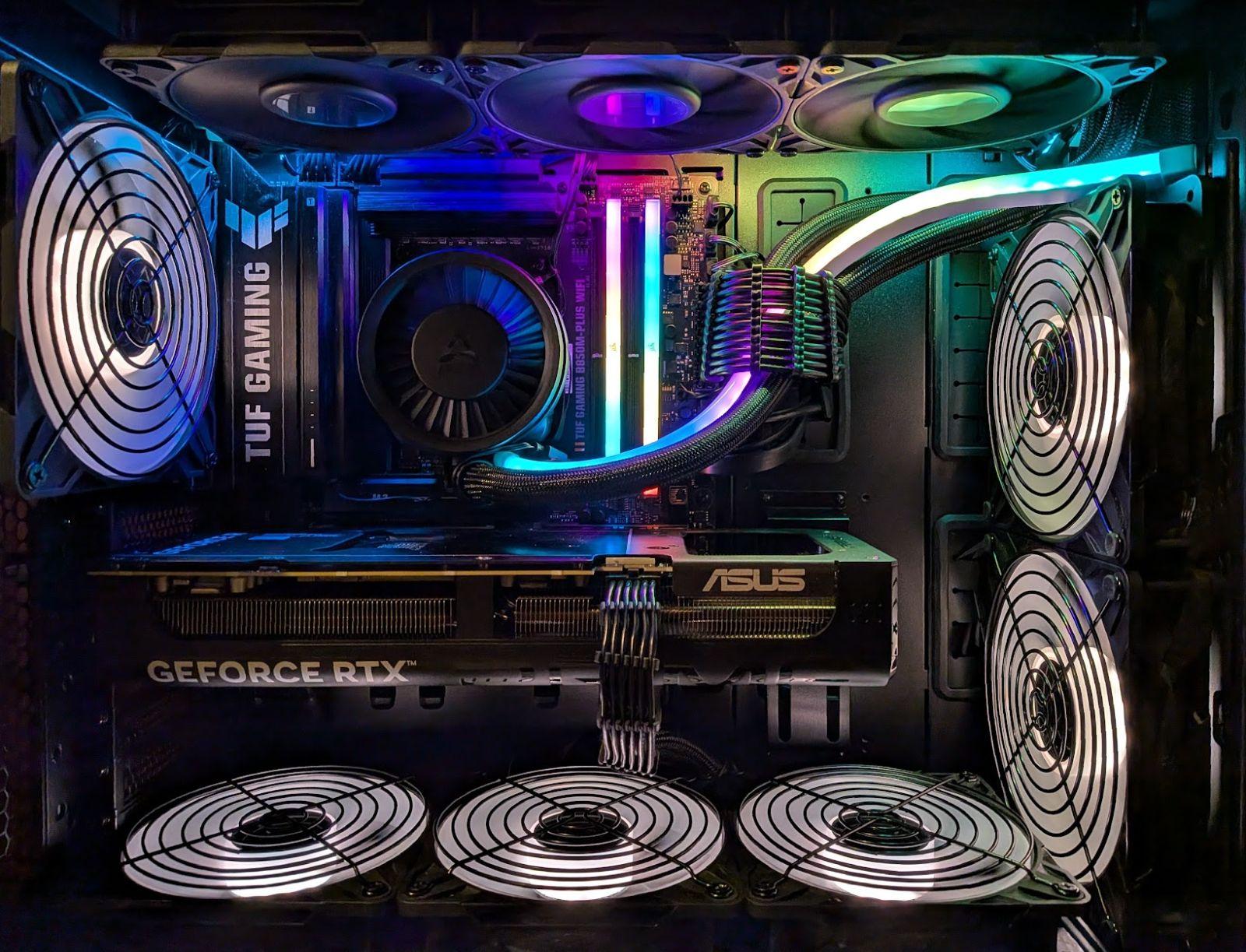 Je pense que tout rentre dans ce boitier immense, pas mal de personnalisation possible surtout niveau GPU, s'il est énorme ou si on veut le mettre en vertical, c'est prévu, en modifiant le placement des fans et en remplaçant certaines pièces fournies.
