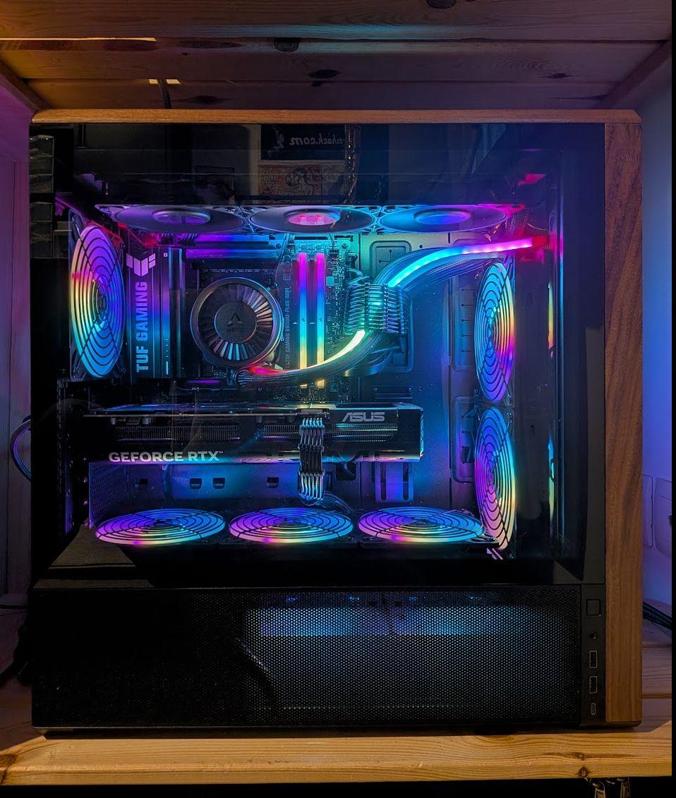 J'ai préféré rester sur un choix plus classique au niveau du design, juste une partie vitrée et un peu de bois pour la classe, ce qui m'a pousser à mettre en avant les LEDs, je n'aurais pas penser faire ça un jour (j'assemblais des PC au siècle dernier) mais je me suis pris au jeu.