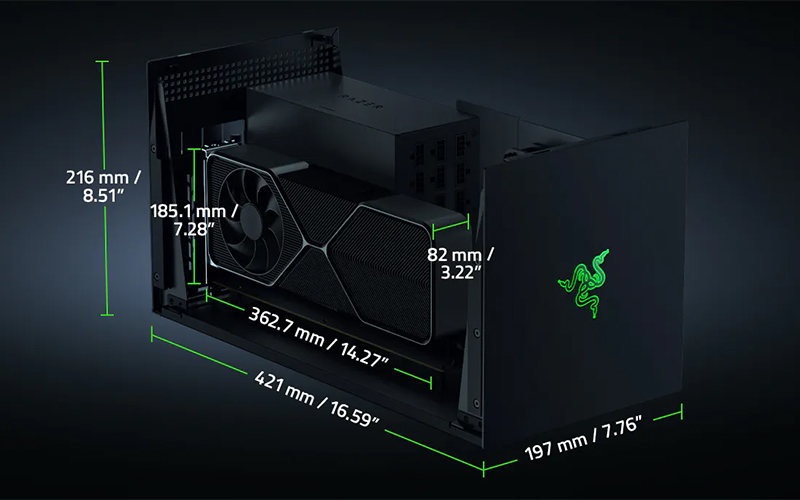 - Boîtier externe pour cartes graphiques (eGPU) conçu pour améliorer les performances graphiques de votre système portable ou compatible